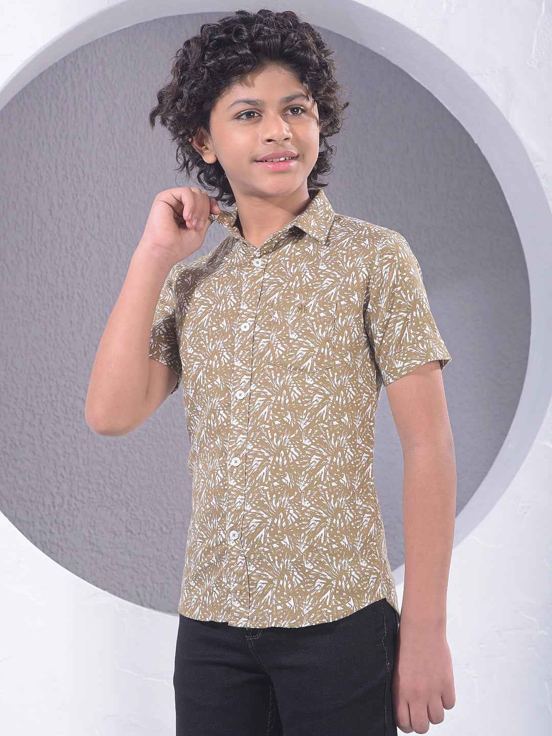 Brown Printed 100% Cotton Shirt