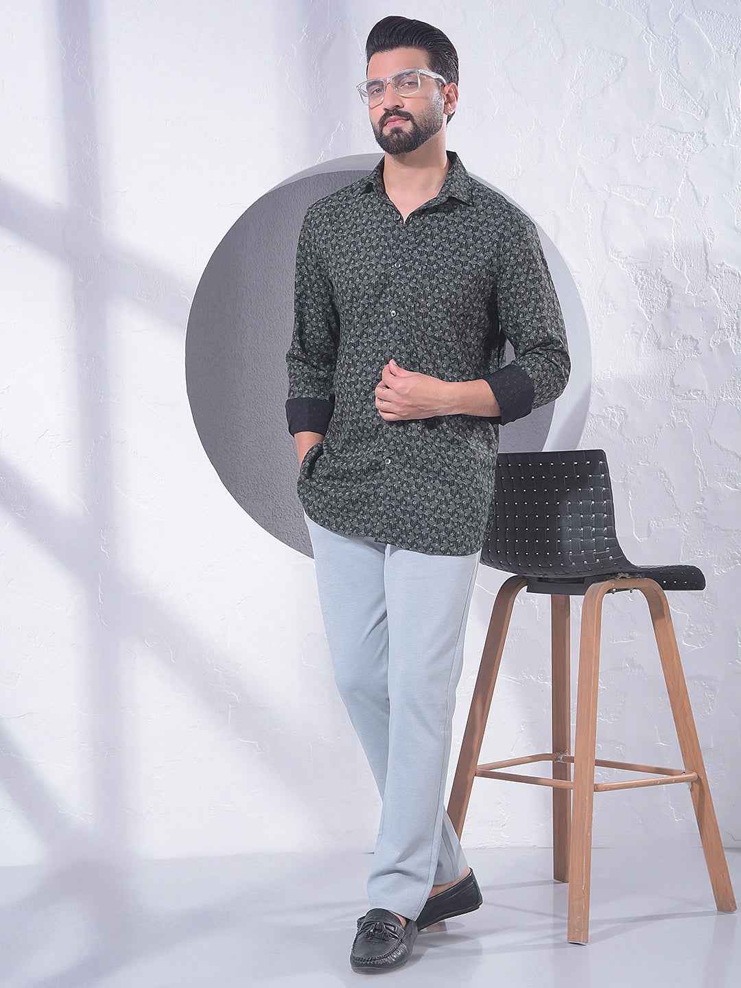Green Creative Printed Shirt
