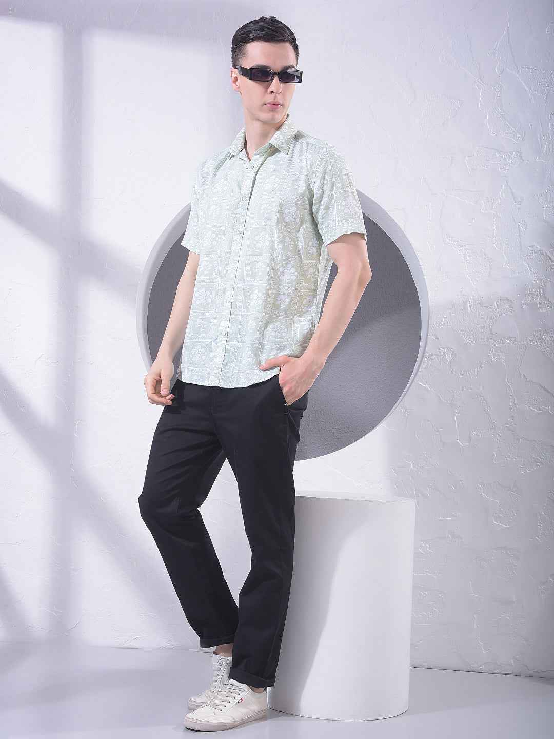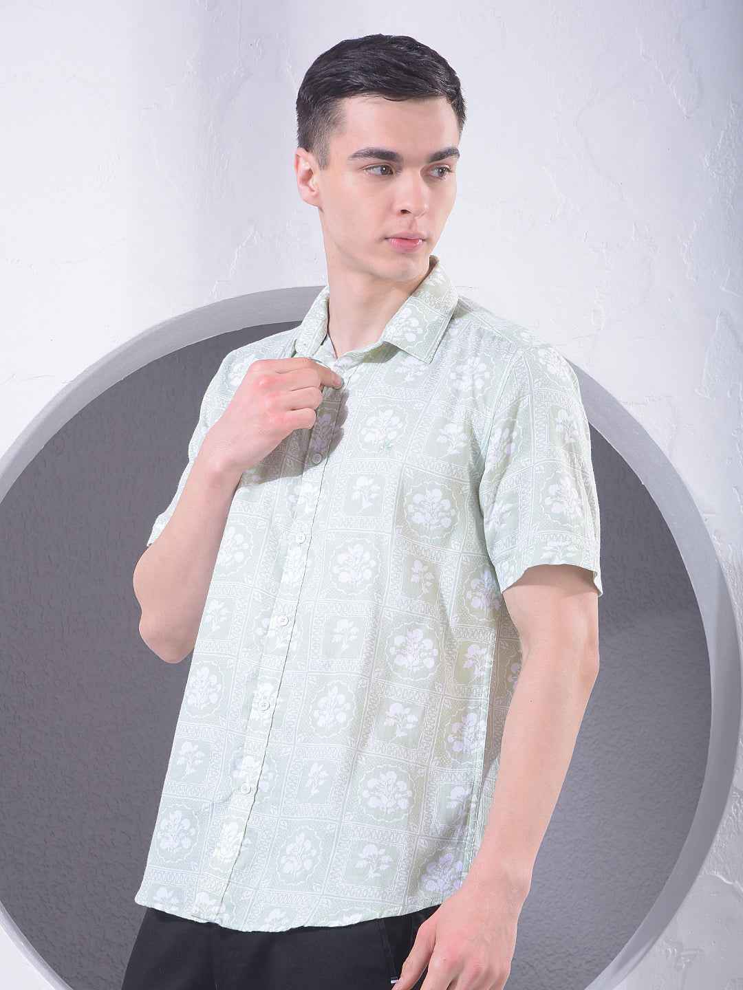 Green Floral Print 100% Cotton Shirt