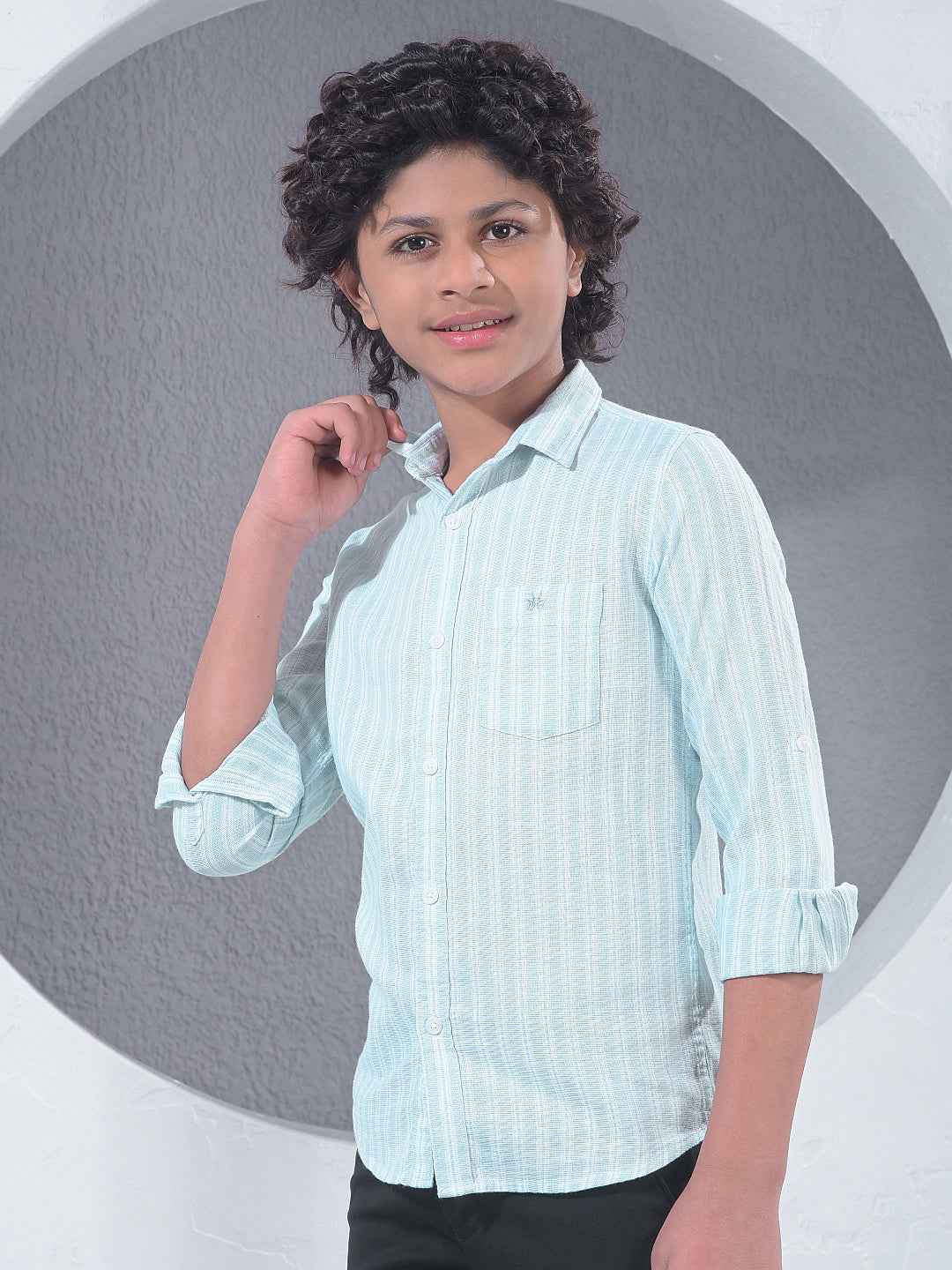 Look crisp in this Crimsoune Club boy's green vertical stripes shirt. Made from 100% cotton, the elongating stripes and breathable fabric offer a polished look that ensures your child stays cool and stylish.