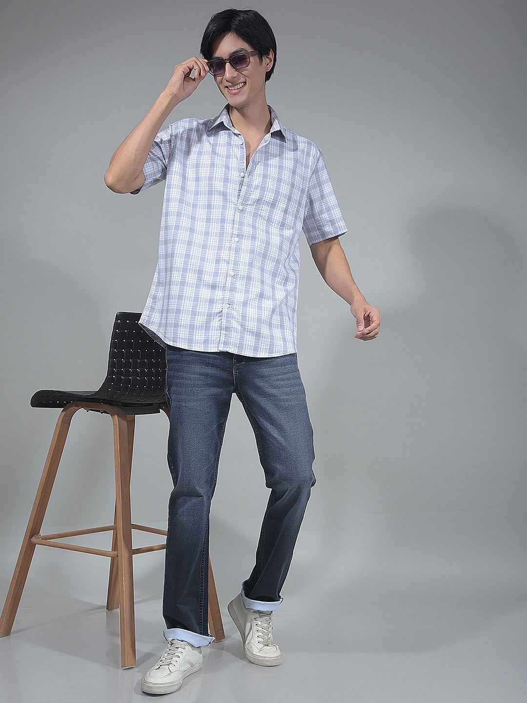 Grey Checked 100% Cotton Shirt