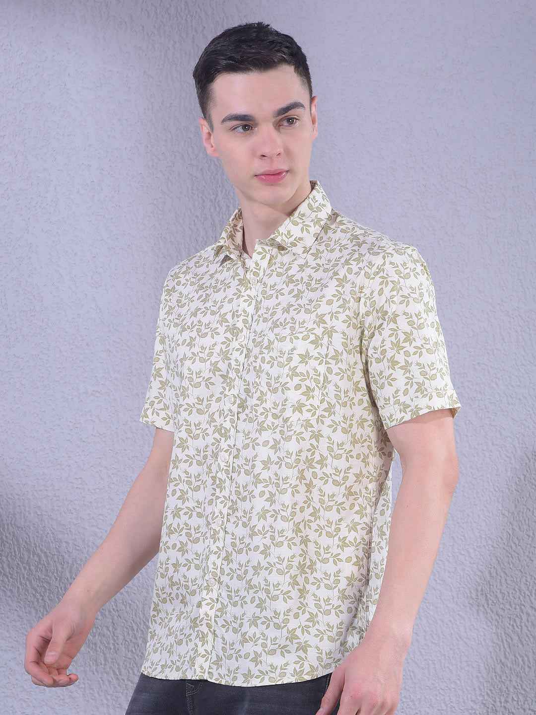 Olive Floral Print Shirt