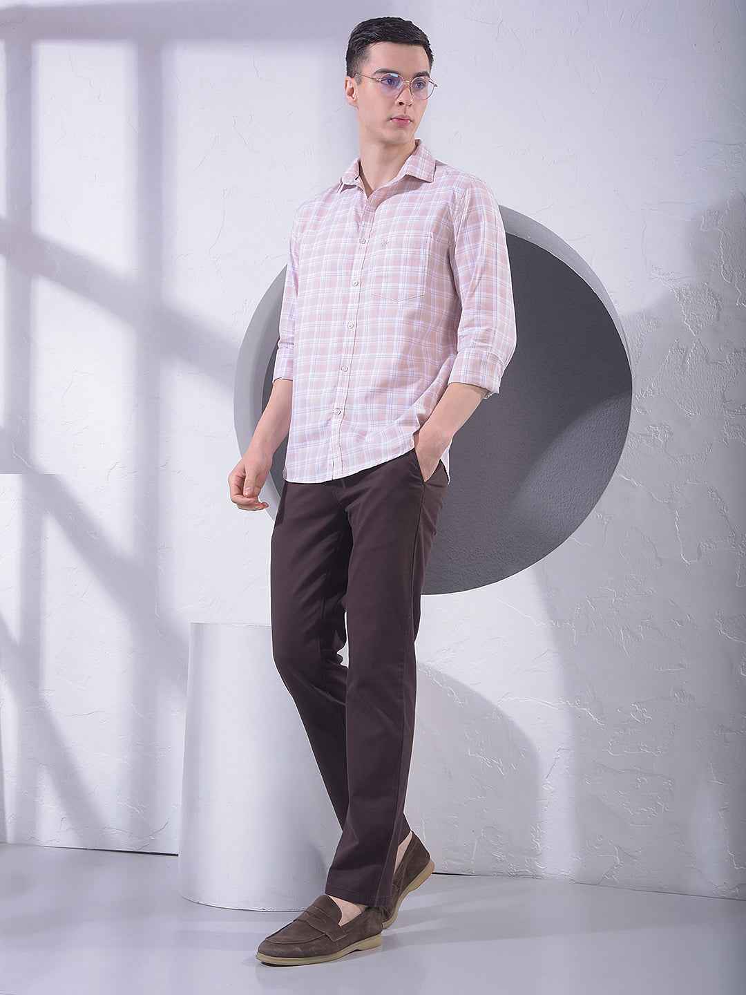 Peach Checked 100% Cotton Shirt