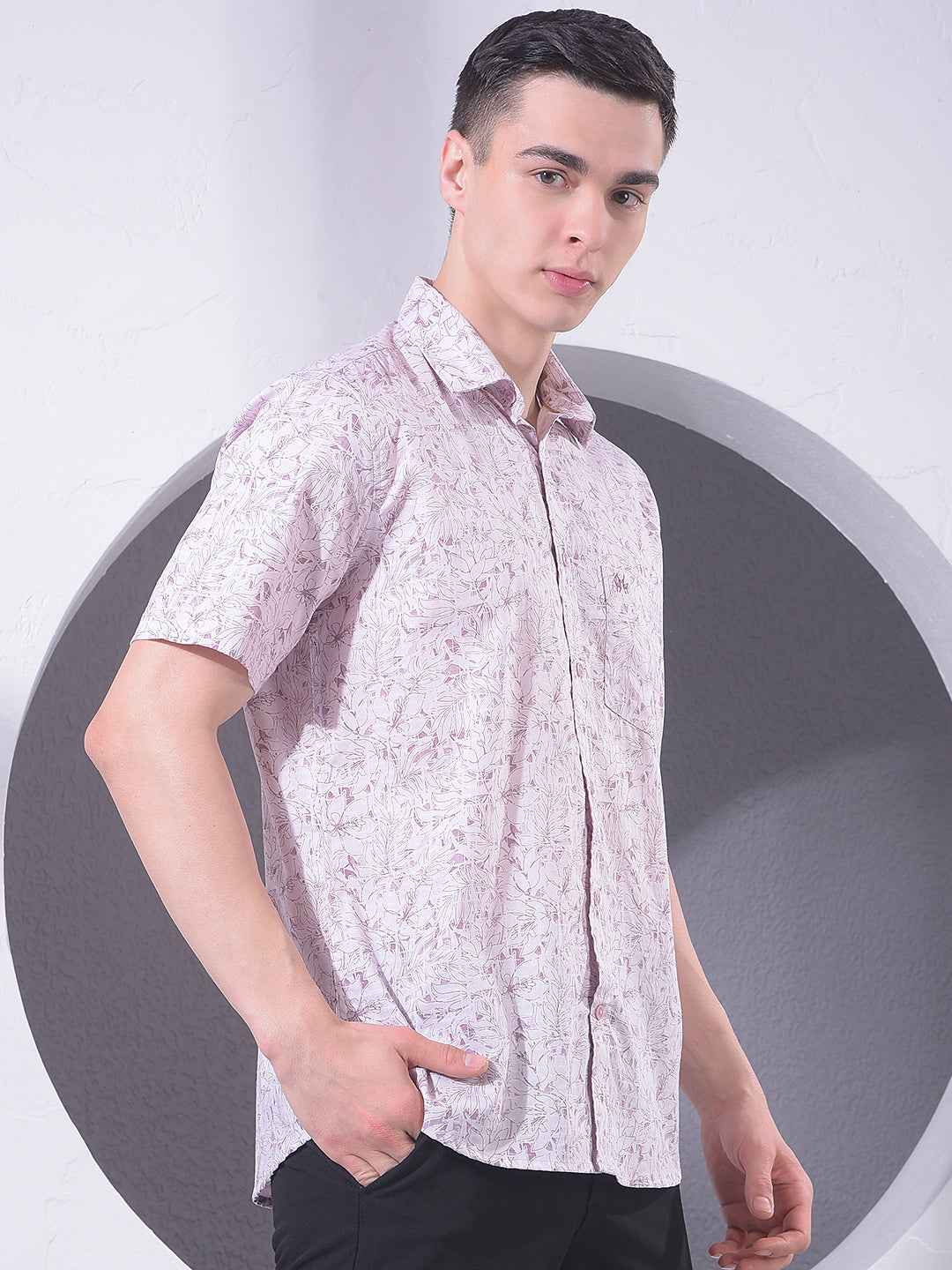 Make a statement with this Crimsoune Club pink floral print shirt. The cheerful color and intricate botanical motifs provide a bold and sophisticated look, perfect for evening parties and stylish social gatherings.