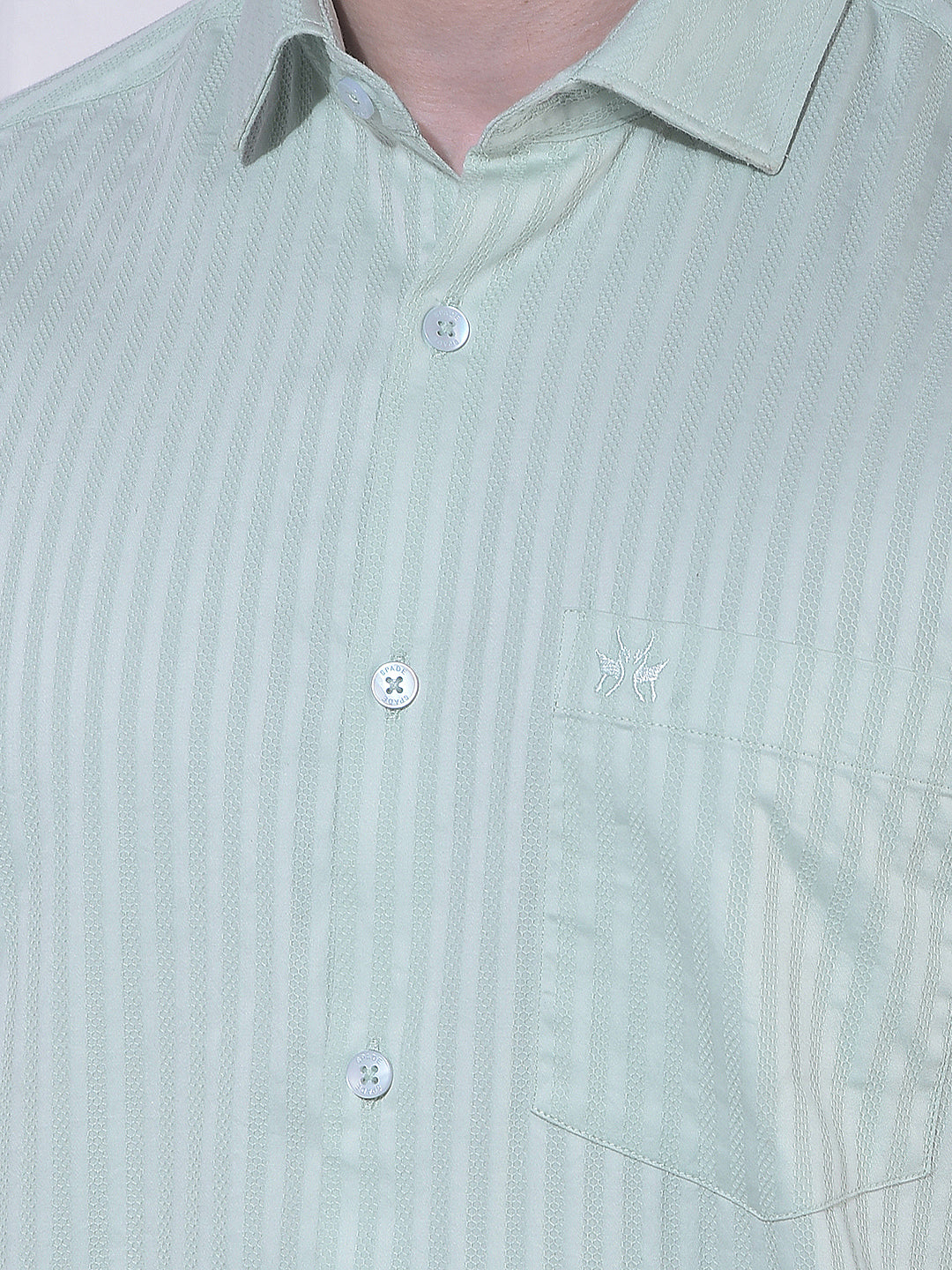 This 100% cotton green vertical stripes shirt provides a classic, elongated look. The traditional pattern and soft material ensure a professional appearance suitable for the office and various smart-casual social gatherings this season.