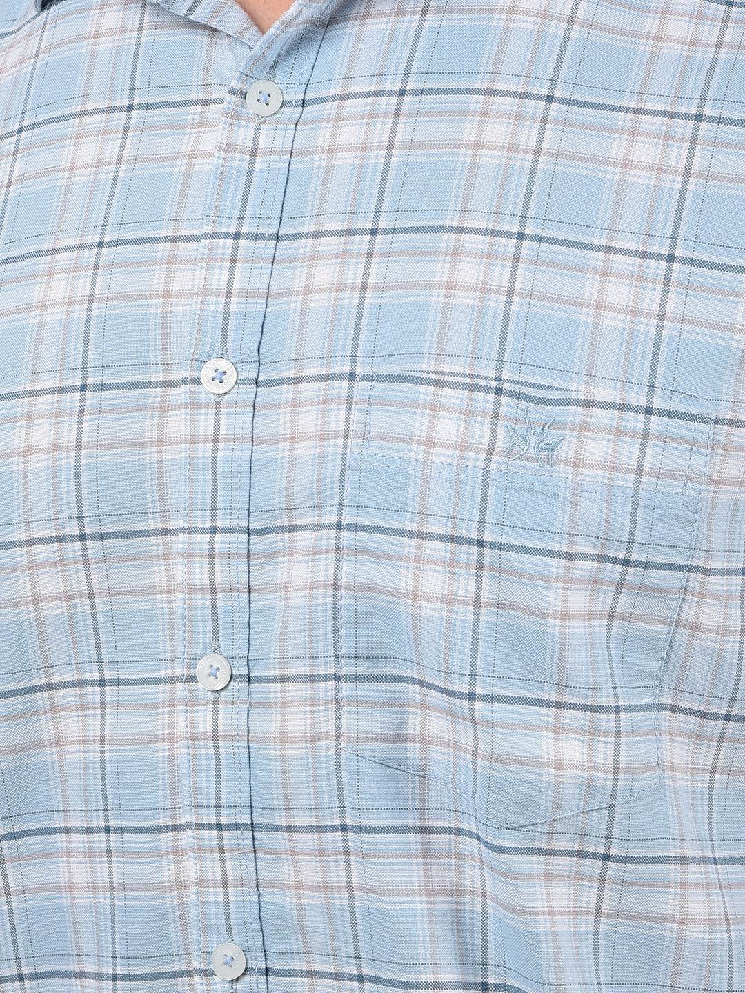 Crimsoune Club Men's Shirt Combines Style And Comfort With Its Premium Fabric And Tailored Fit. Designed In Blue Color And Featuring The Checked Pattern, This Shirt Is Perfect For Both Casual And Formal Wear, Offering A Sleek And Modern Look.