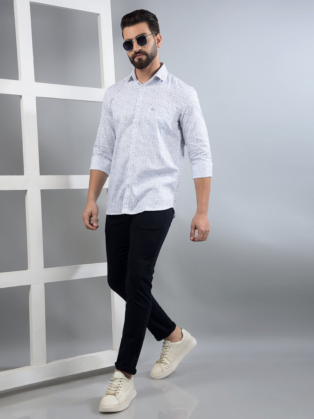 Blue Printed 100% Cotton Shirt-Men Shirts-Crimsoune Club
