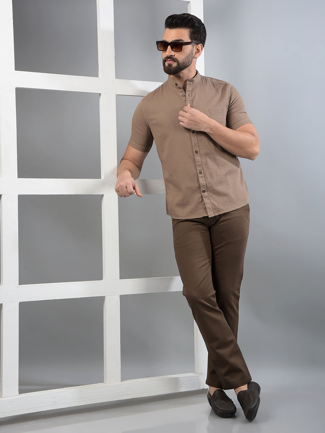 Brown 100% Cotton Shirt-Men Shirts-Crimsoune Club