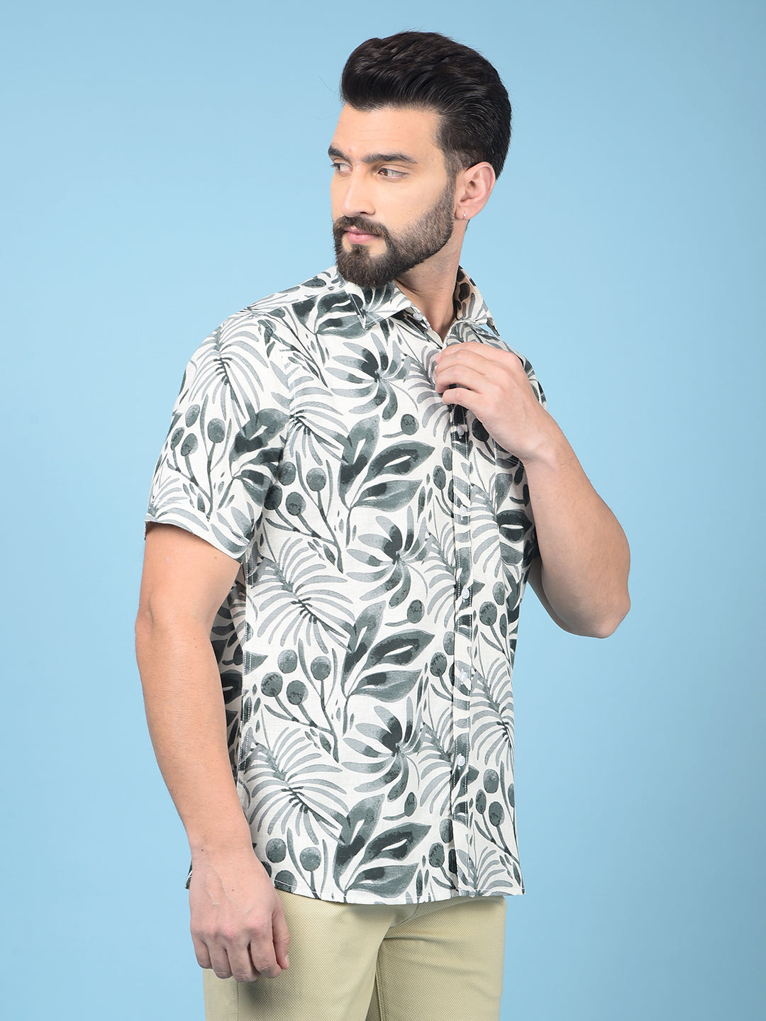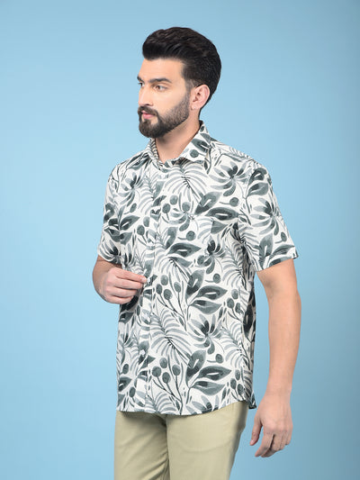 Green Floral Print Linen Shirt-Men Shirts-Crimsoune Club
