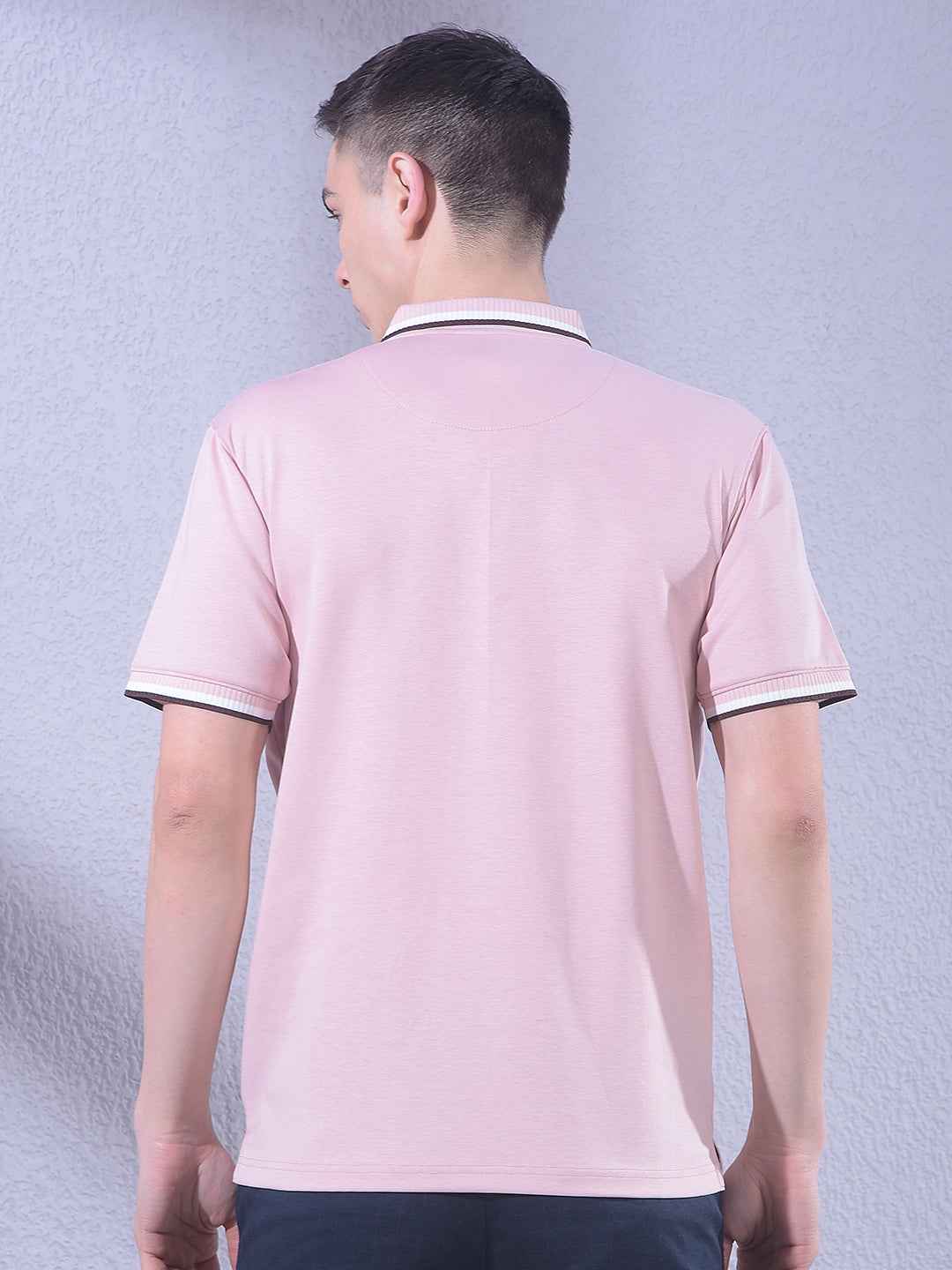 Pink Polo Neck T-Shirt with Zip Closure