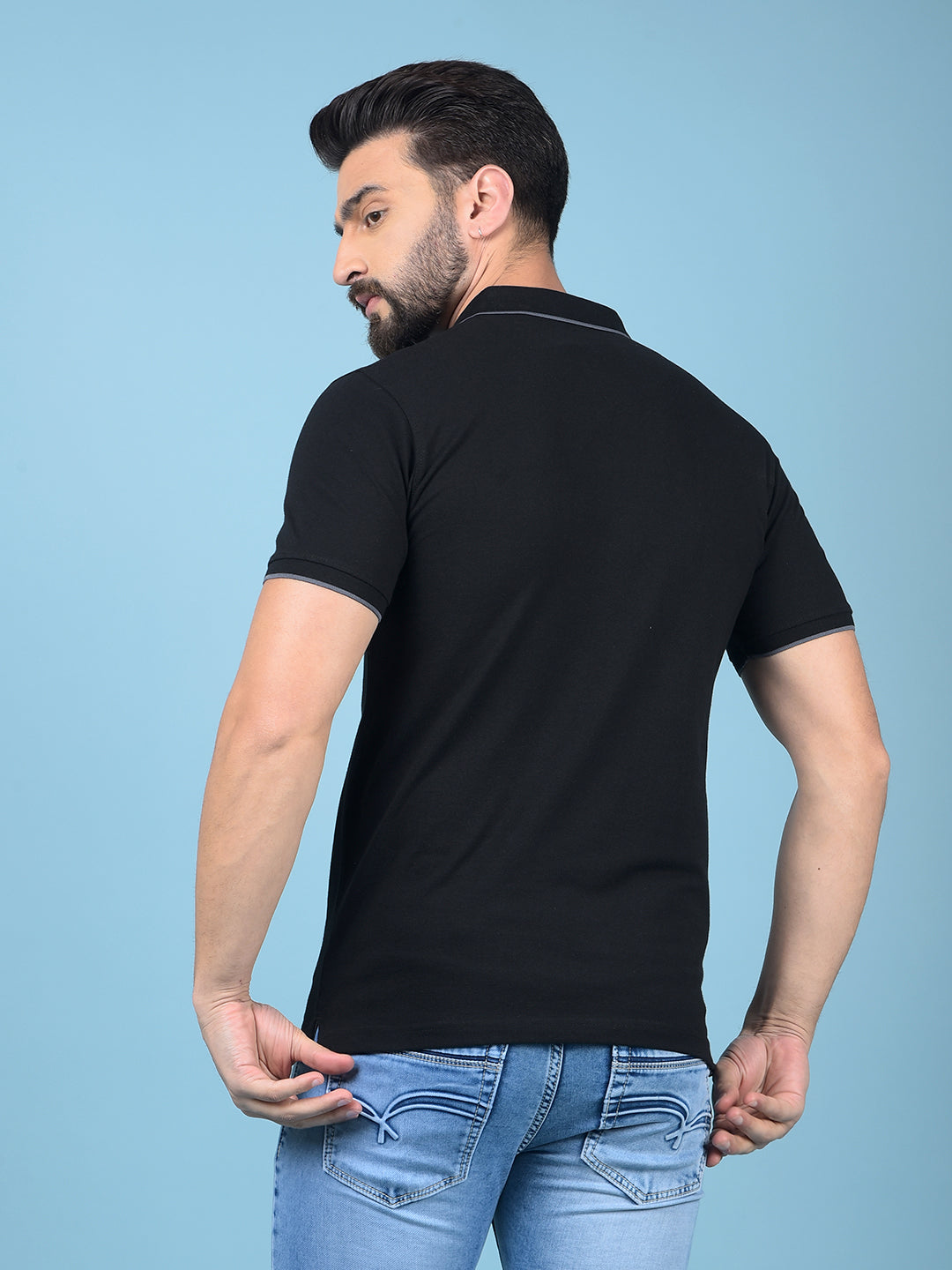 Black Polo-Neck T-Shirt-Men T-Shirts-Crimsoune Club