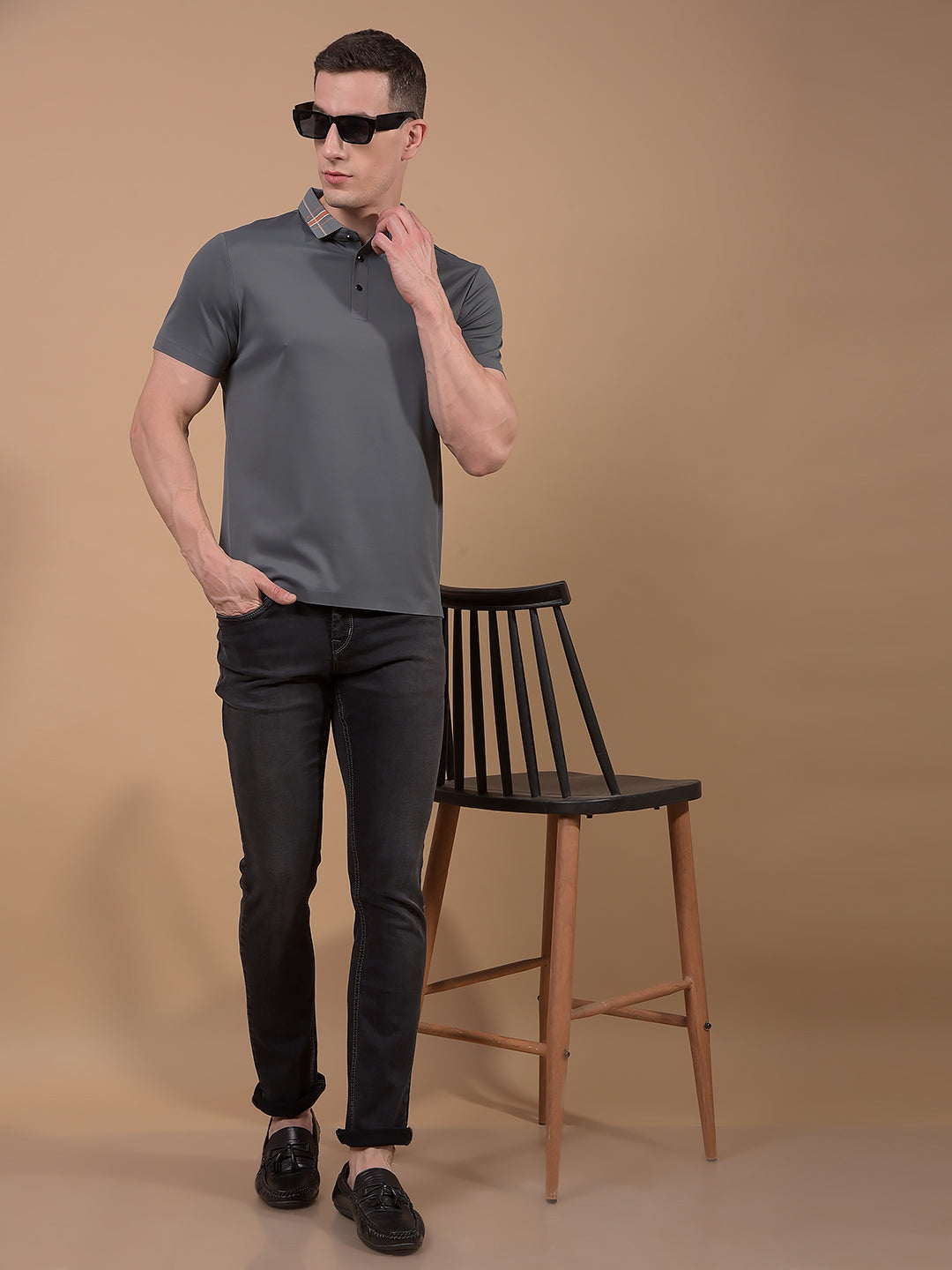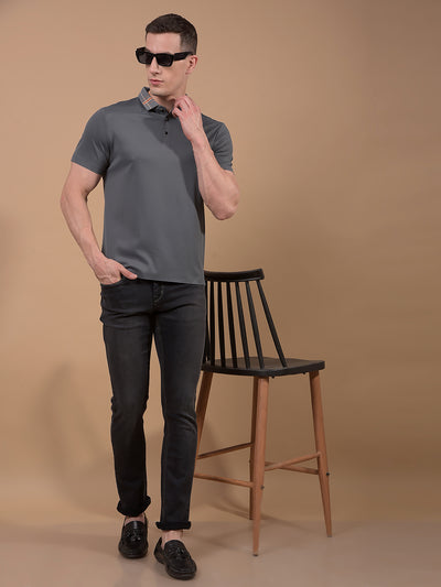 Grey Polo Neck T-Shirt-Men T-Shirts-Crimsoune Club