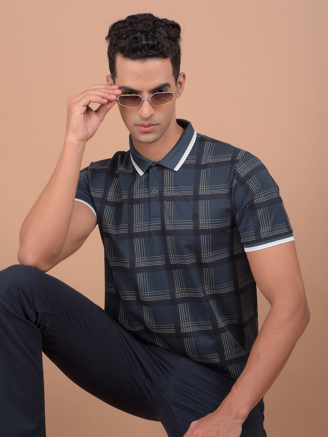 Navy Blue Printed Polo Neck T-Shirt-Men T-Shirts-Crimsoune Club