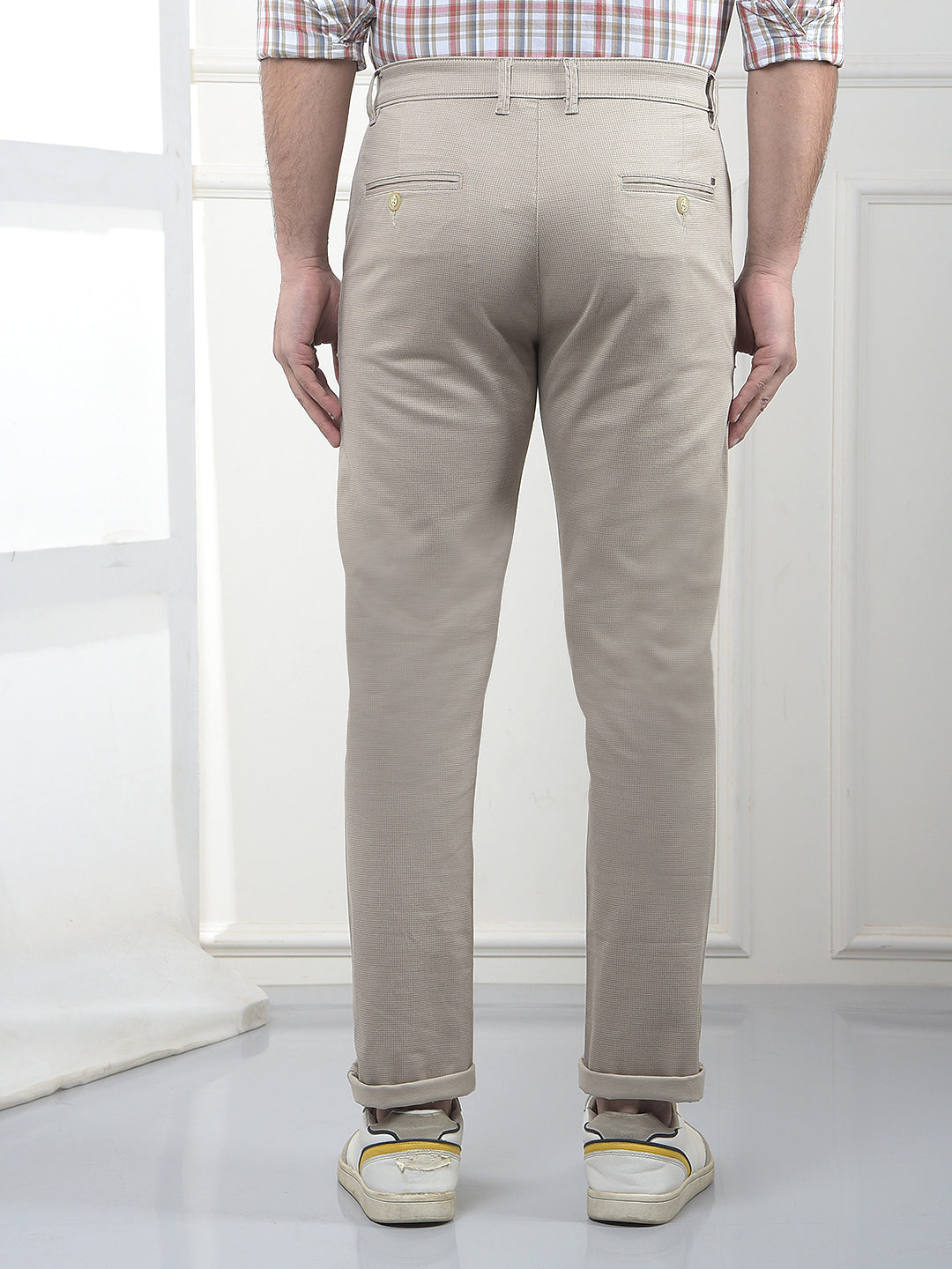 Crimsoune Club men’s beige slim fit jacquard trousers feature subtle woven texture for a refined look. The slim cut and light tone make them ideal for events, functions and daytime gatherings with dress shirts.