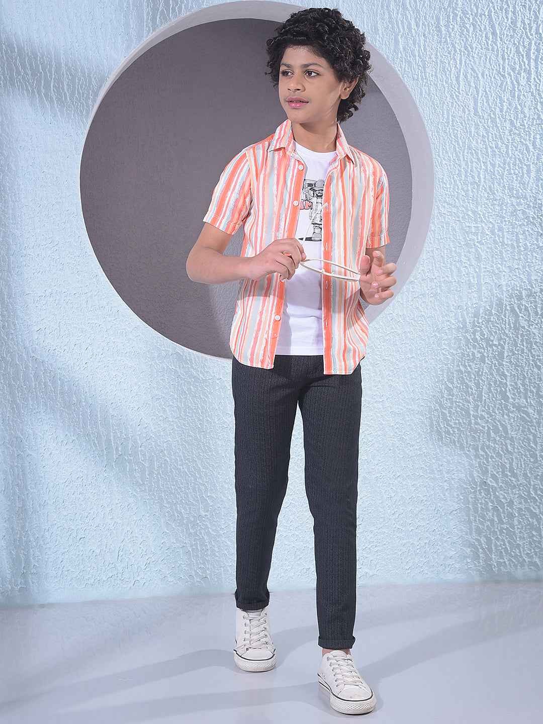 Refine your child's attire with these black vertical stripes trousers. The timeless striped pattern and sleek black color provide a sharp look that is perfect for both casual and semi-formal settings during the week.