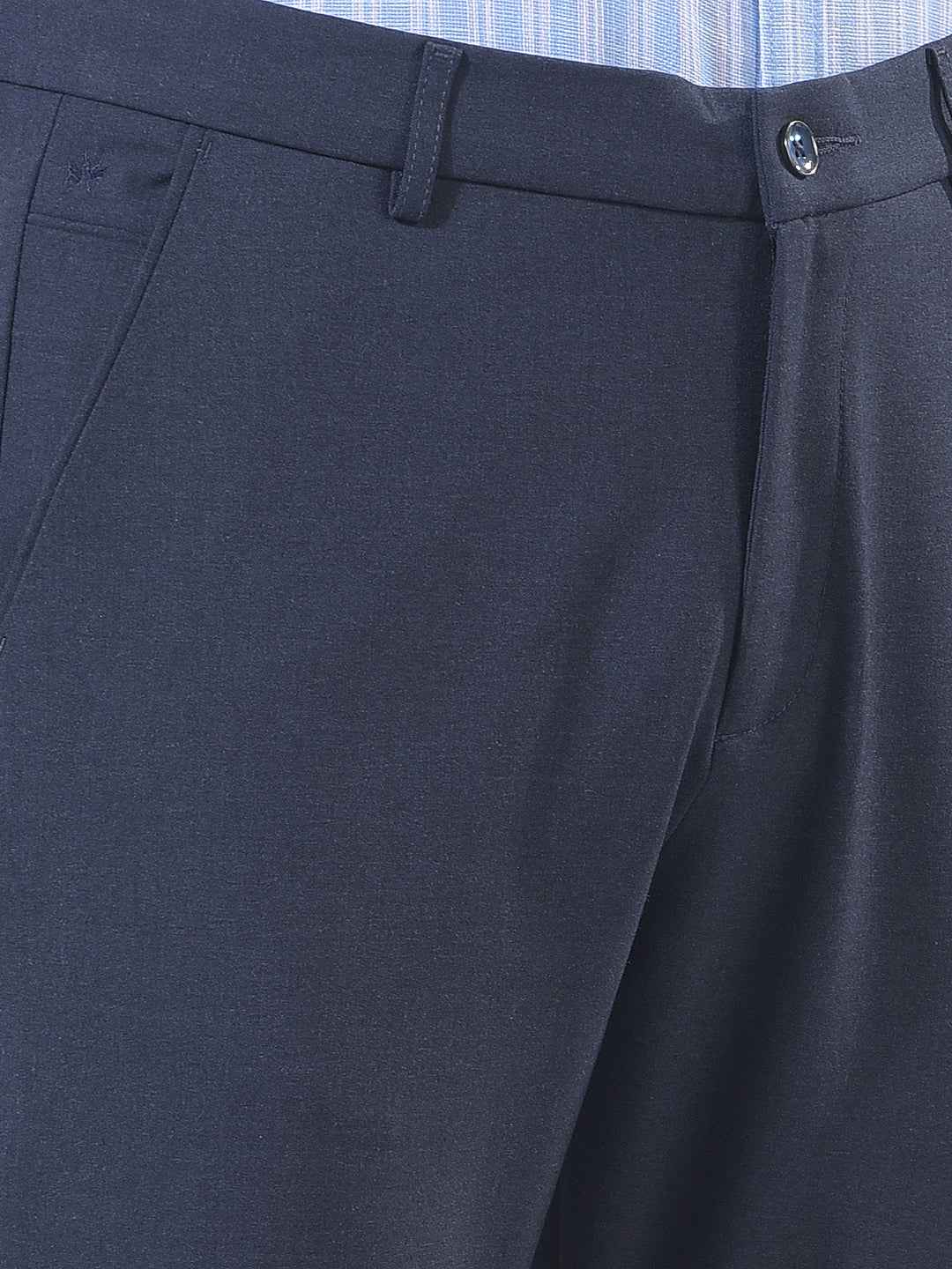 Look sharp in these navy blue trousers. The deep color and classic design offer a polished appearance while ensuring maximum quality for all your professional meetings and various casual daily social activities today.
