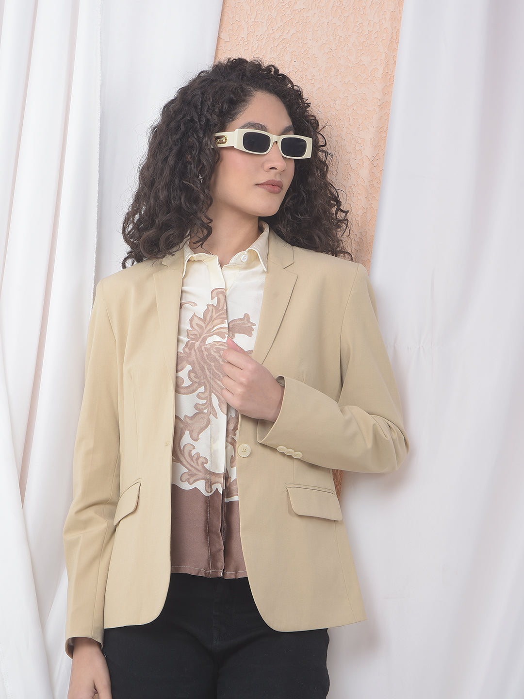 A versatile Crimsoune Club women's beige blazer for layering over any outfit. Its single-breasted silhouette and classic notched lapel deliver effortless elegance and a contemporary fit.
