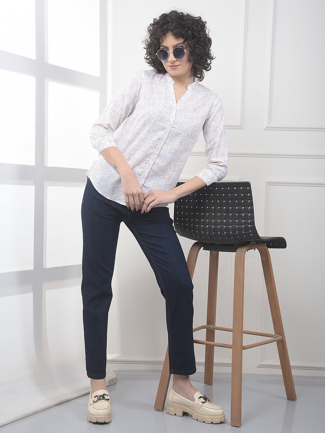 Crimsoune Club Women’s Beige Floral Print Linen Shirt is made from airy linen fabric for cool comfort. Perfect for summer wear, office casuals, and outings, it blends floral style with relaxed elegance.