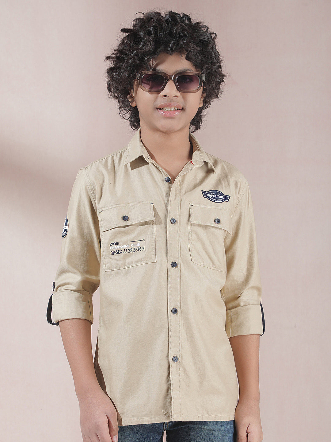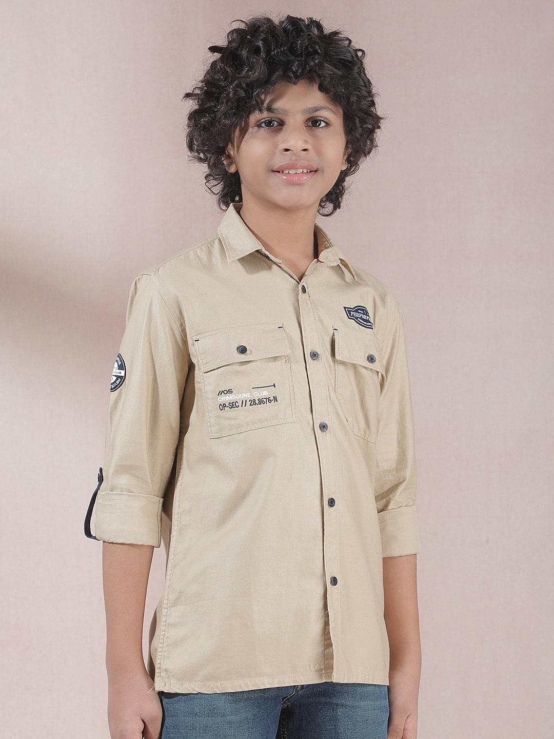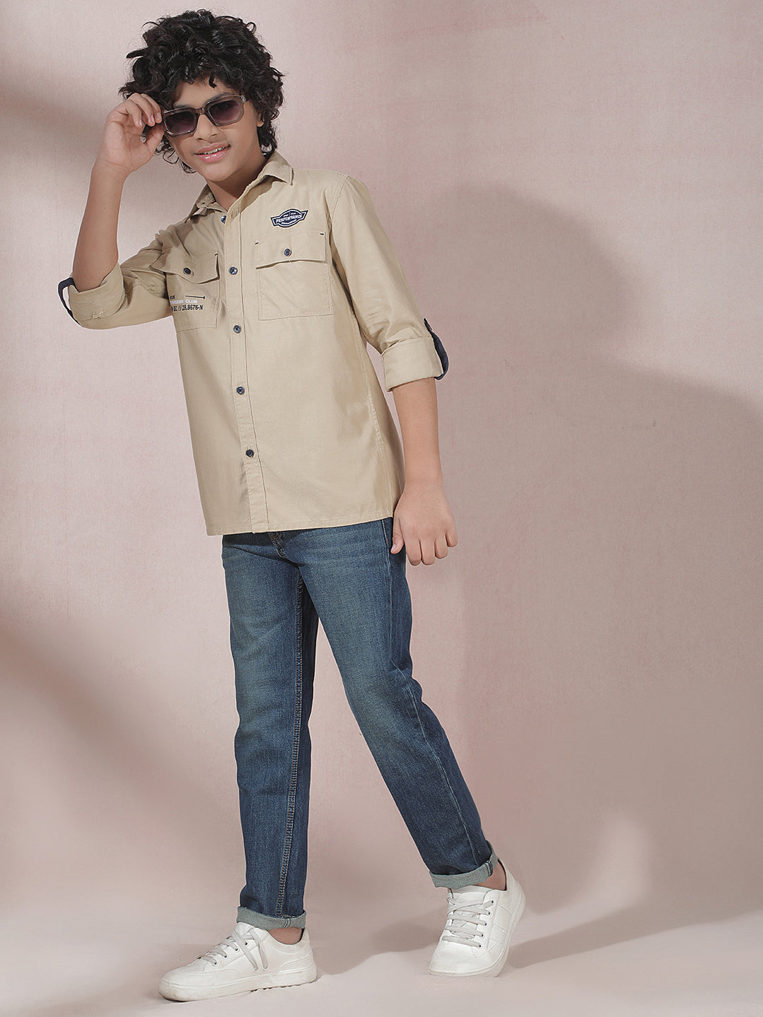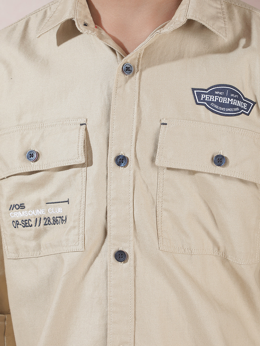 Crimsoune Club Boy's Brown Shirt : Soft brown shirt offering neutral tones for easy mix and match with any outfit.
