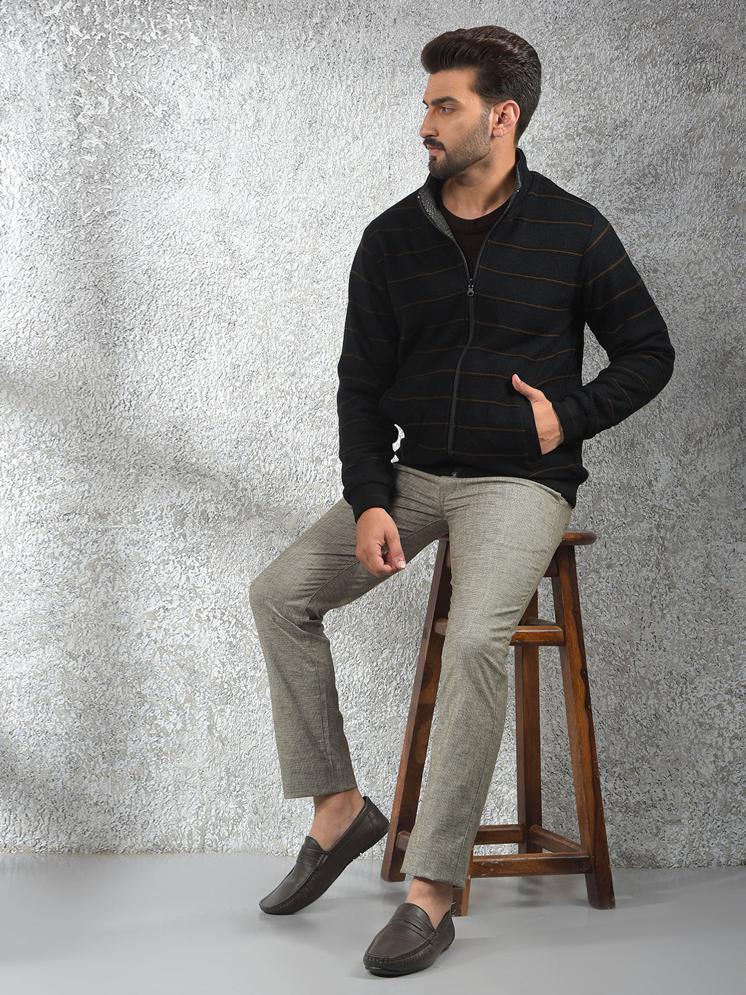 A black checked reversible jacket, a classic and versatile piece that offers two distinct looks and a comfortable, stylish fit.