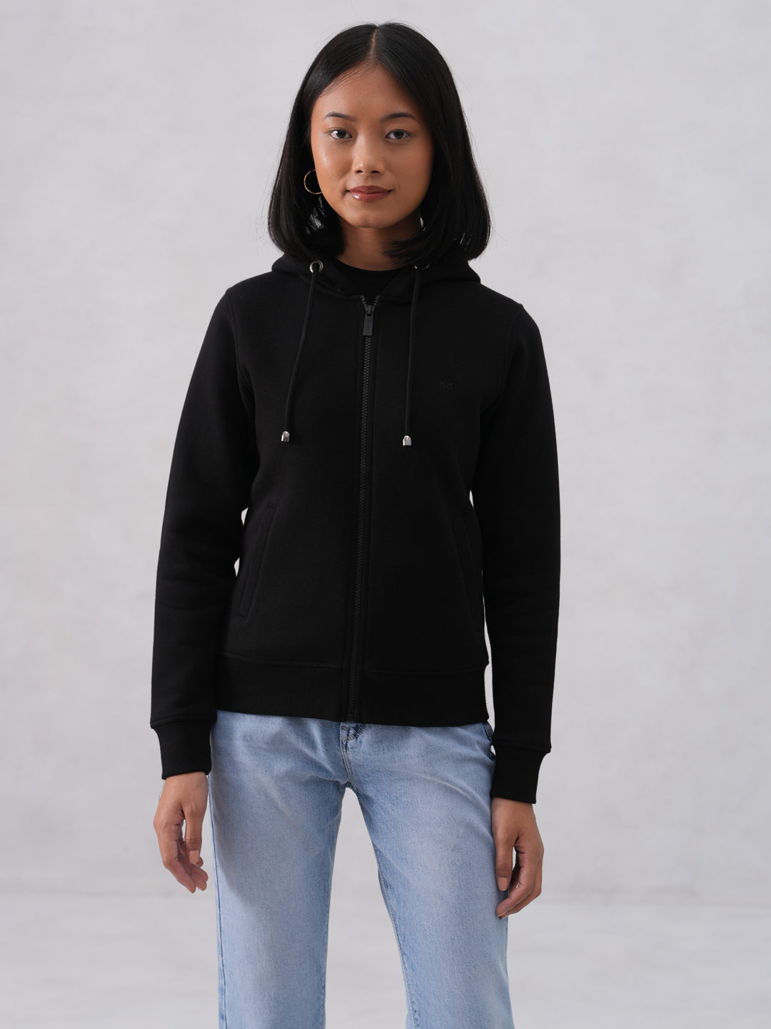 A Wardrobe Staple, This Women's Black Hooded Sweatshirt From Crimsoune Club Is Perfect For A Cool And Casual Look. The Classic Black Color And Comfortable Hooded Design Make It An Essential Item For Layering.