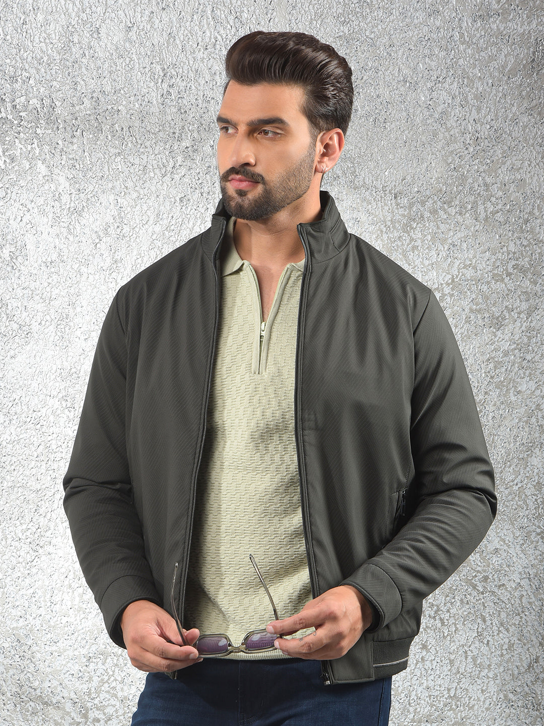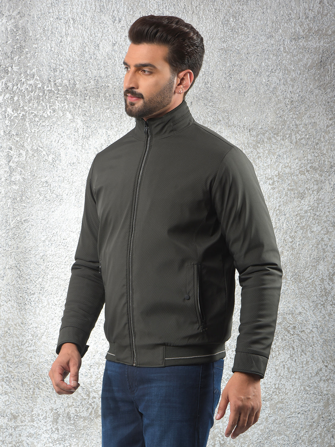 A black puffer jacket with a subtle print, providing a sleek and modern look with the added benefit of cozy warmth and comfort.