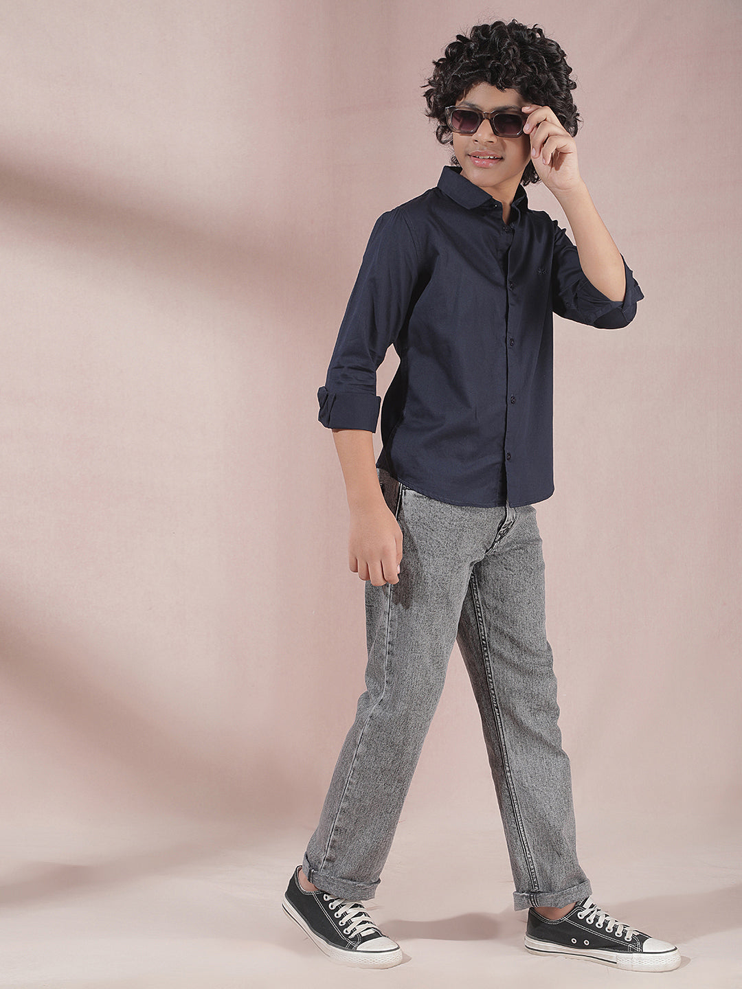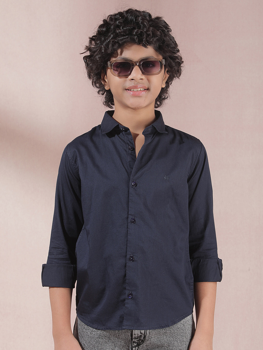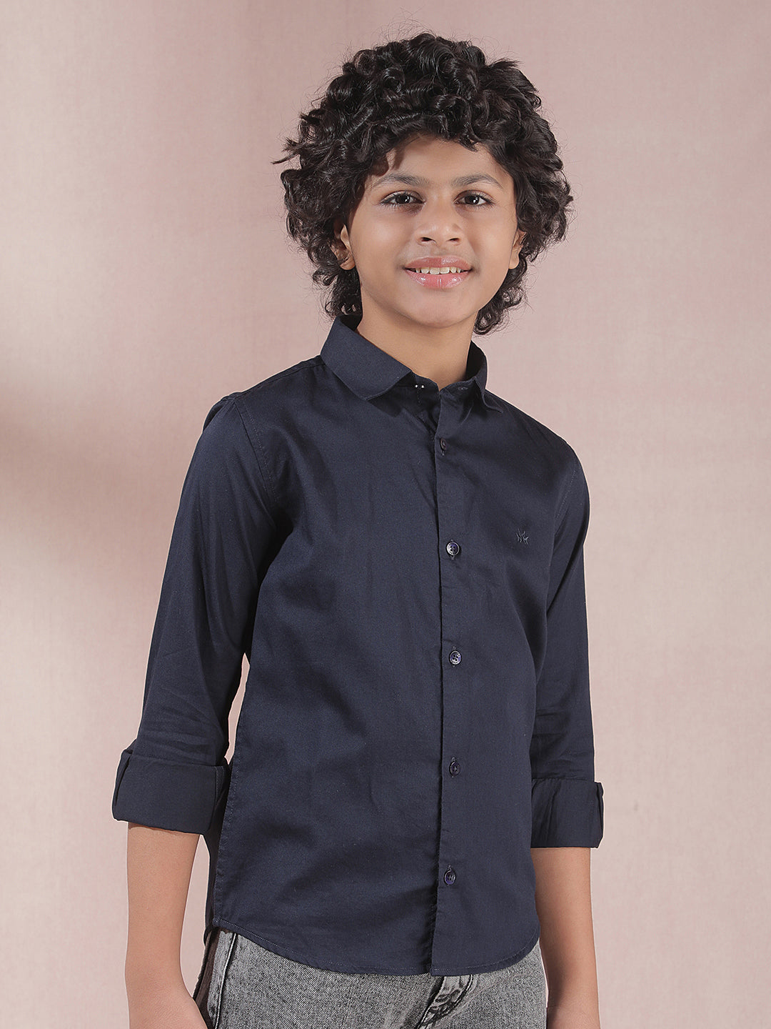Crimsoune Club Boy's Blue 100% Cotton Shirt : Classic blue cotton shirt combining comfort and style for versatile daily use.