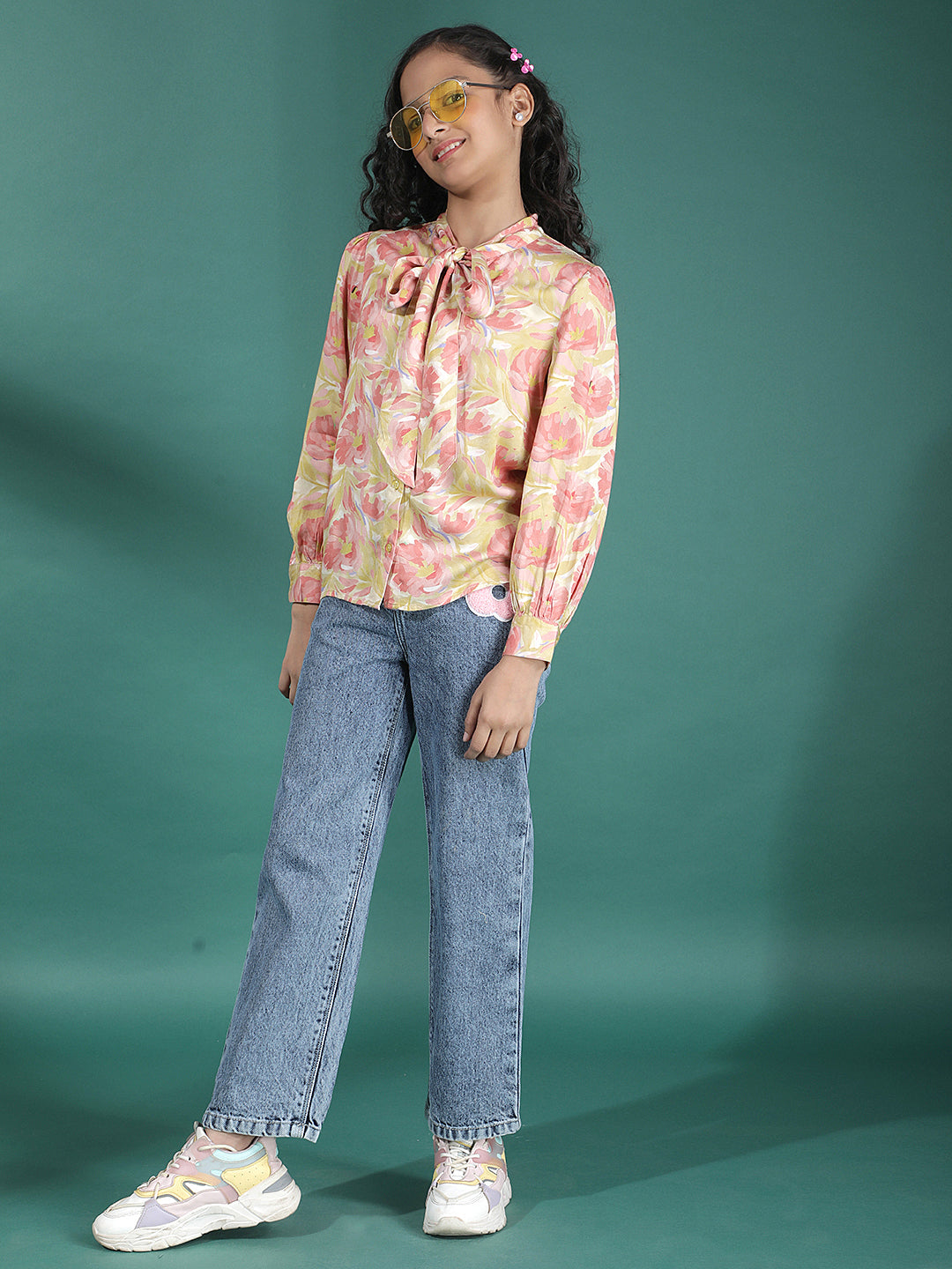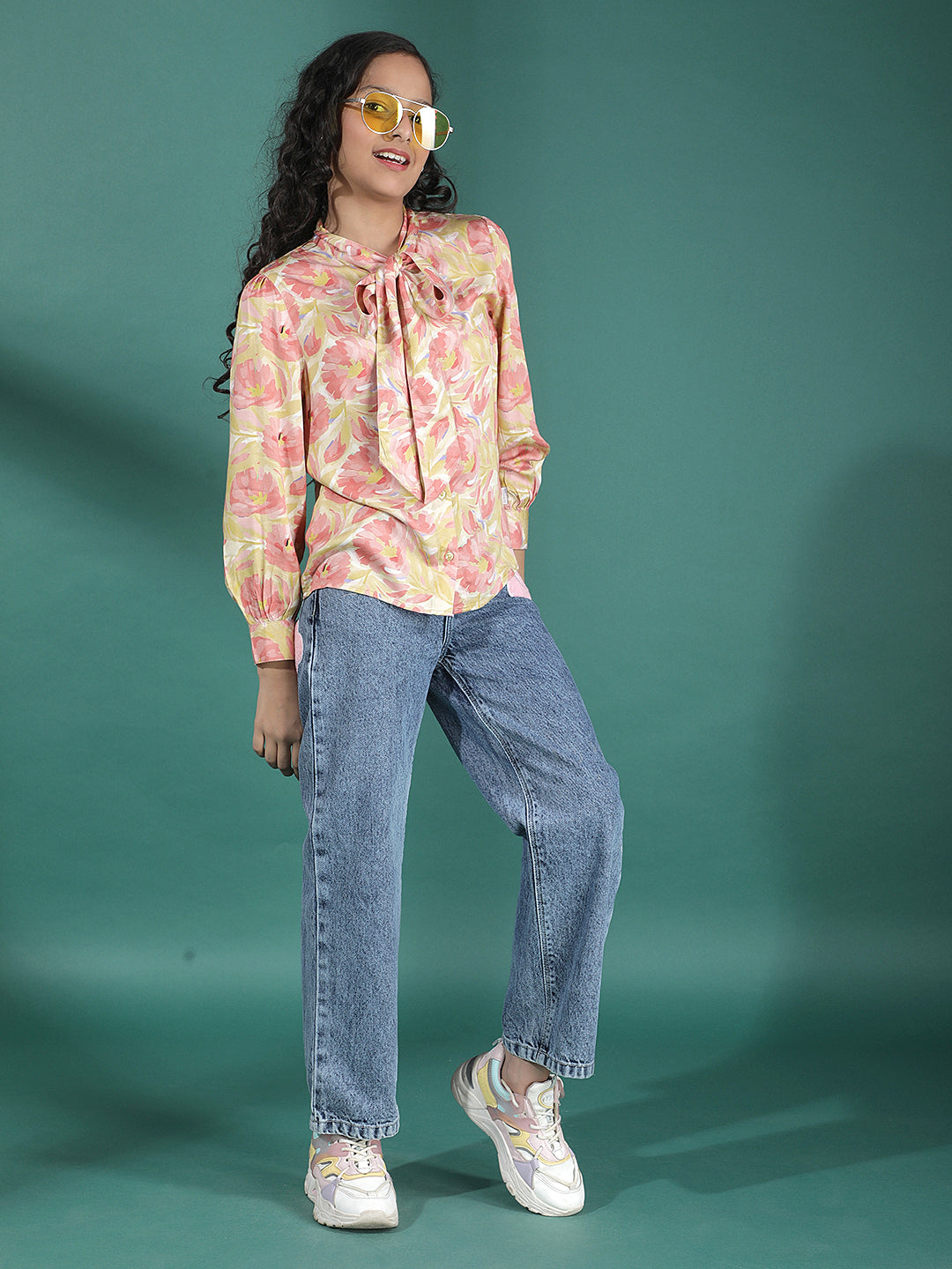 Girl's Blue Wide-Leg Jeans From Crimsoune Club, Made From Pure Cotton. Loose Fit With Classic Denim Feel. Stylish And Breathable Choice For Daily Wear.