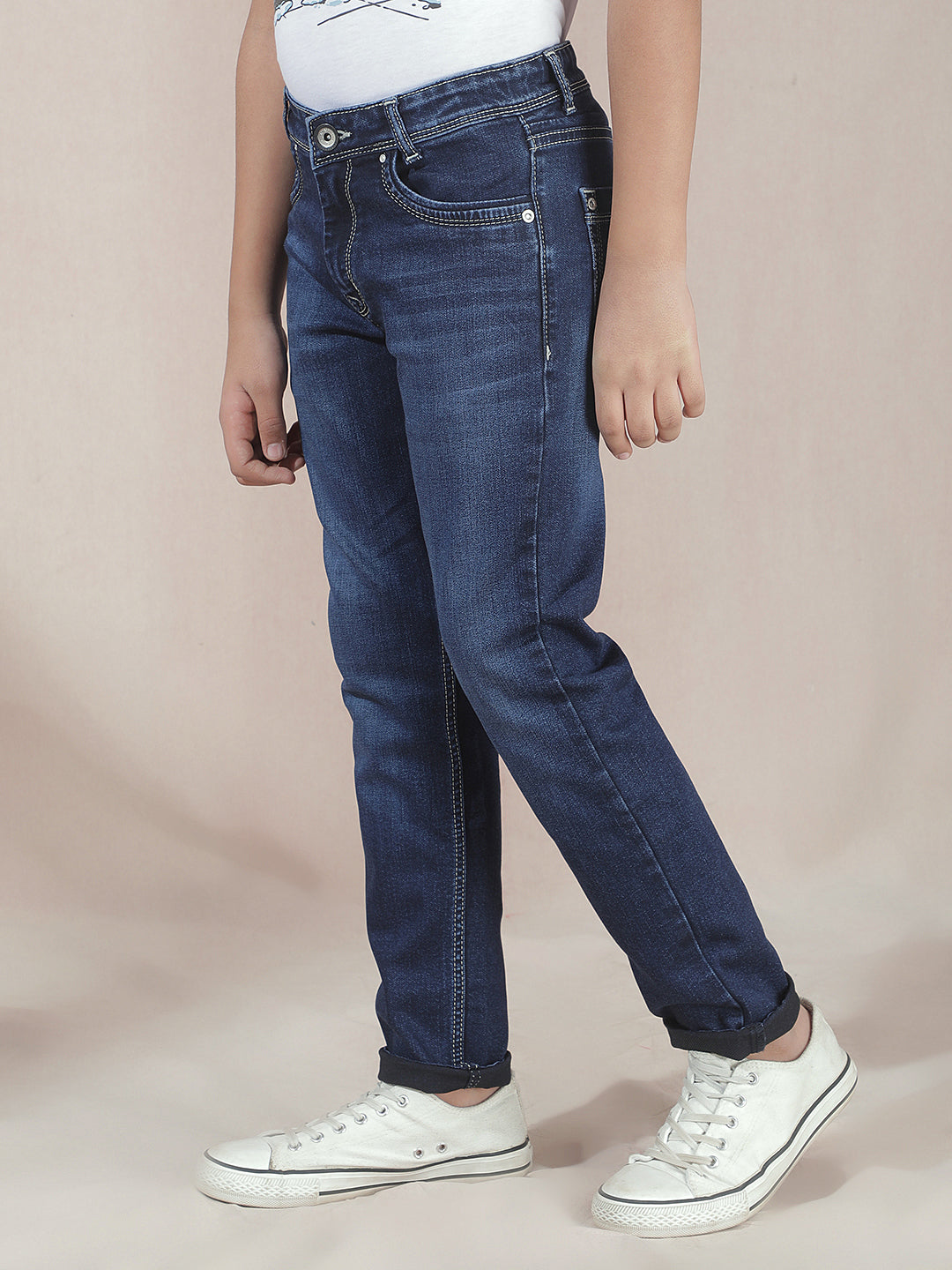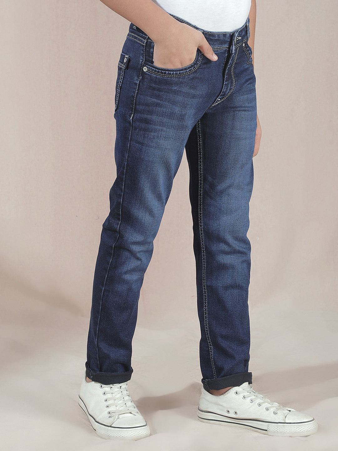 Crimsoune Club Boy's Navy Blue Jeans : Rich navy blue jeans combining durability with a polished casual style.