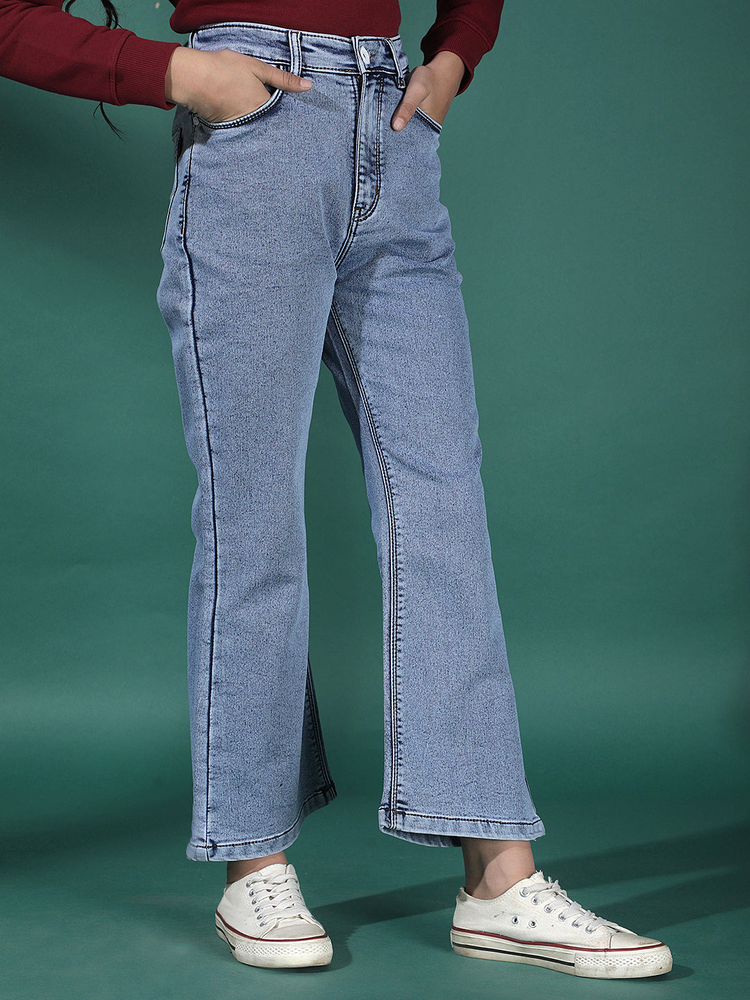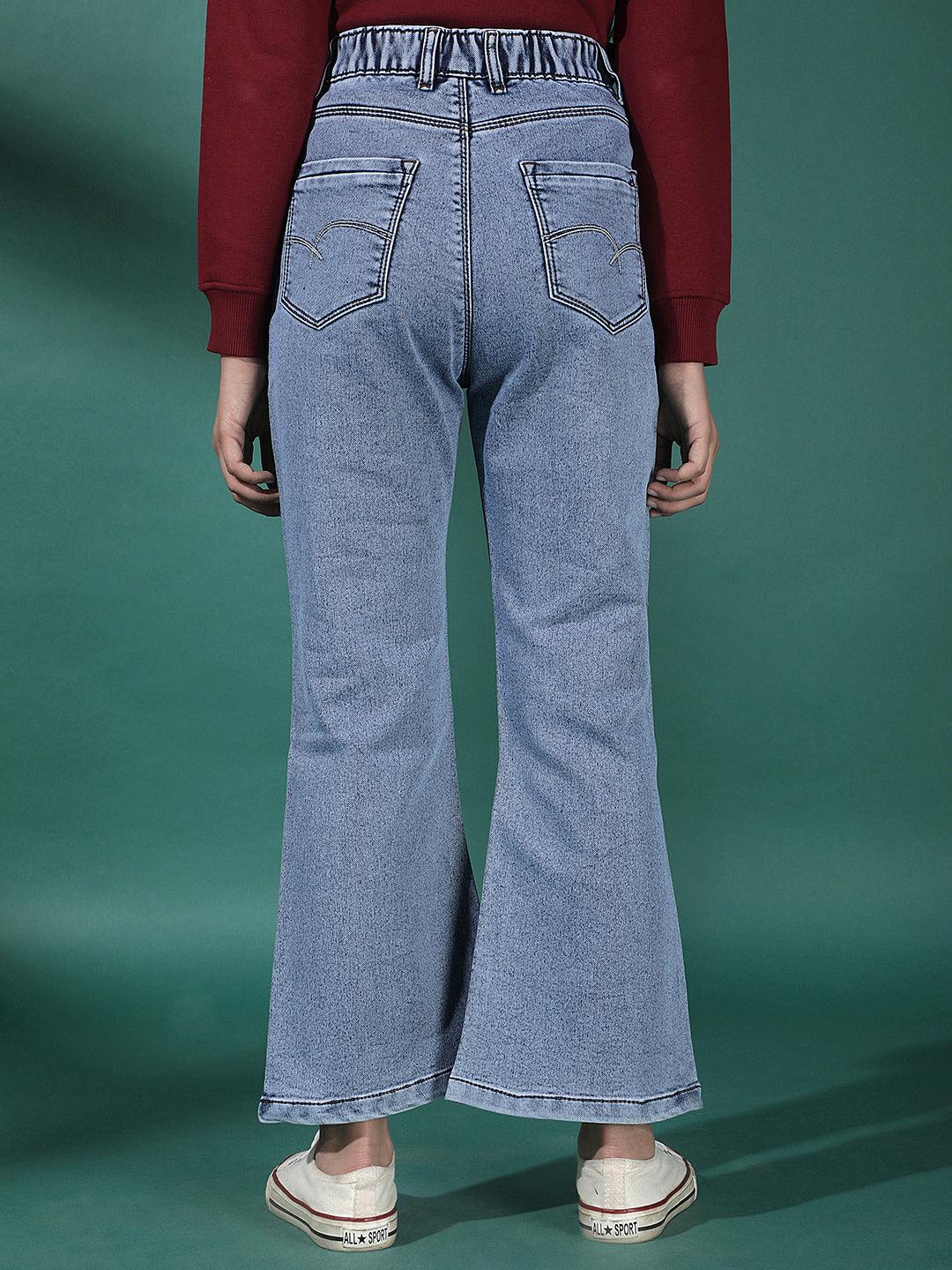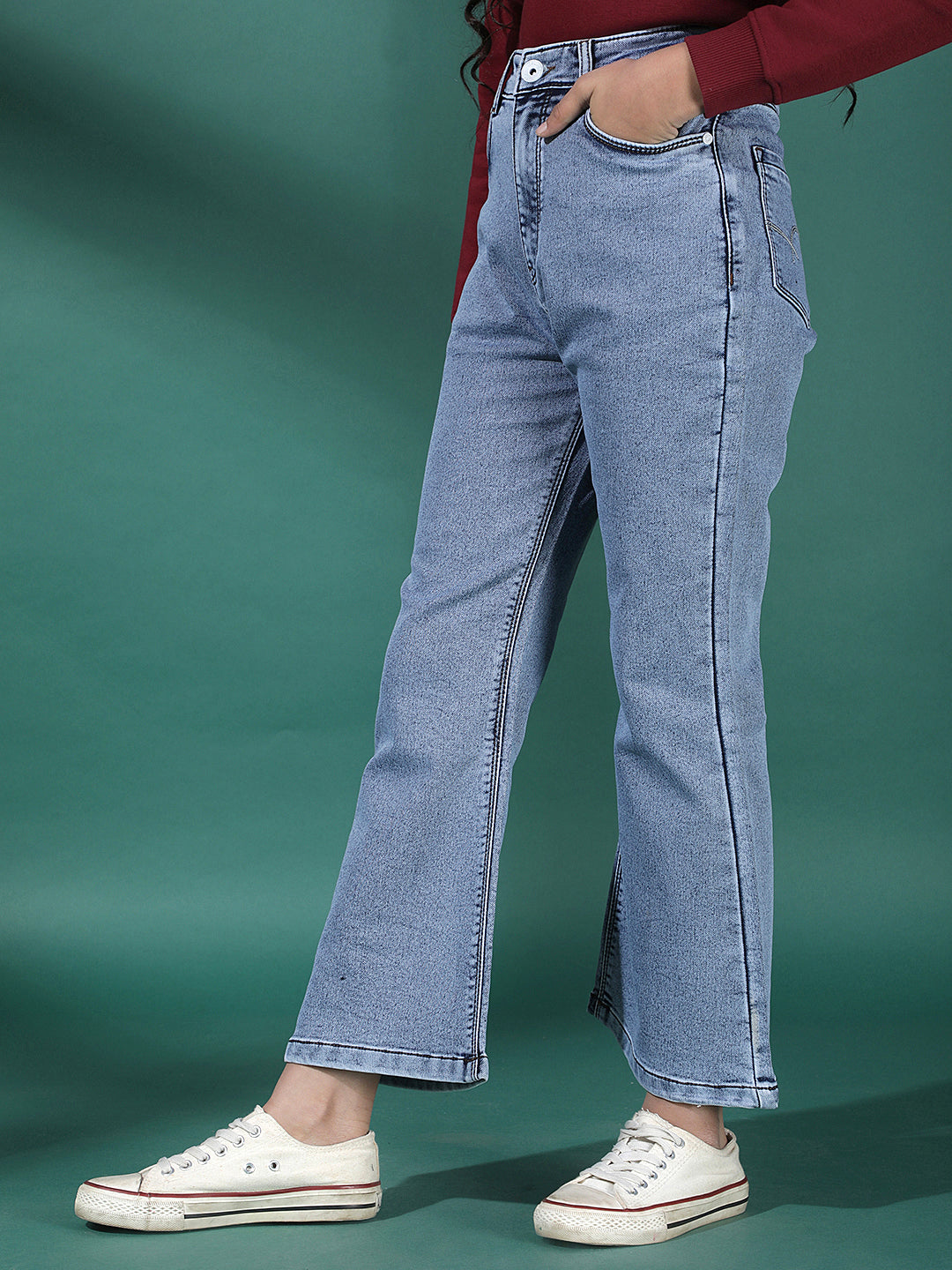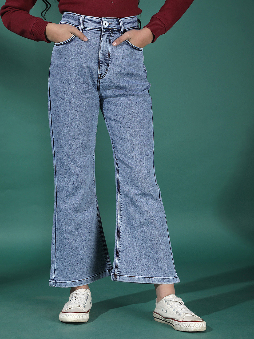 Crimsoune Club Girl's Blue Bootcut Cargo Jeans crafted to offer everyday ease with a fashion-forward twist—perfect for running errands, meeting friends, or simply lounging in effortless style from day to night.