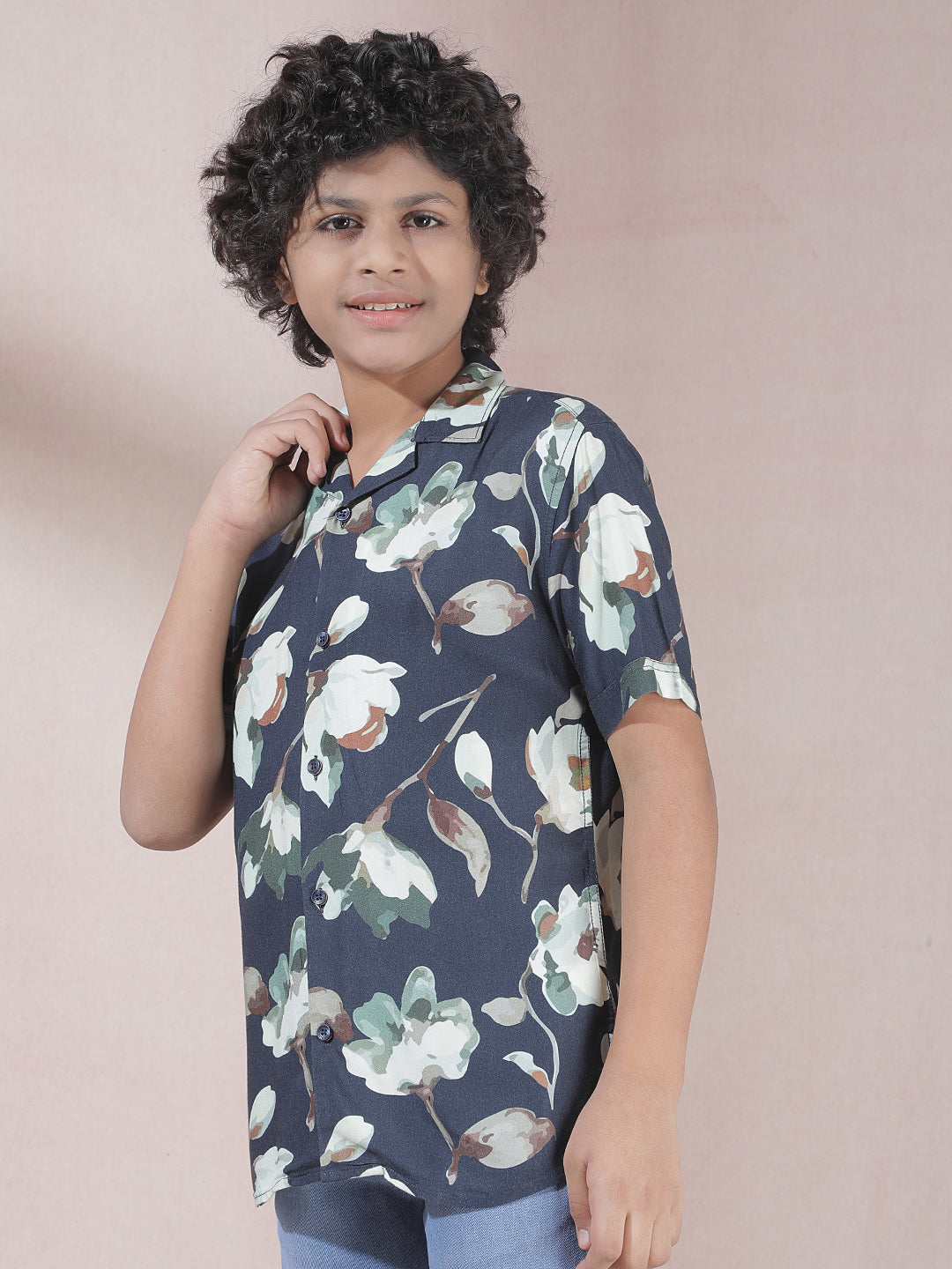 Crimsoune Club Boy's Green Floral Print 100% Cotton Shirt : Refreshing green floral patterns on pure cotton, designed to keep him cool and stylish throughout the day.
