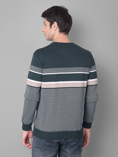 Green Striped Sweatshirt-Men Sweatshirts-Crimsoune Club