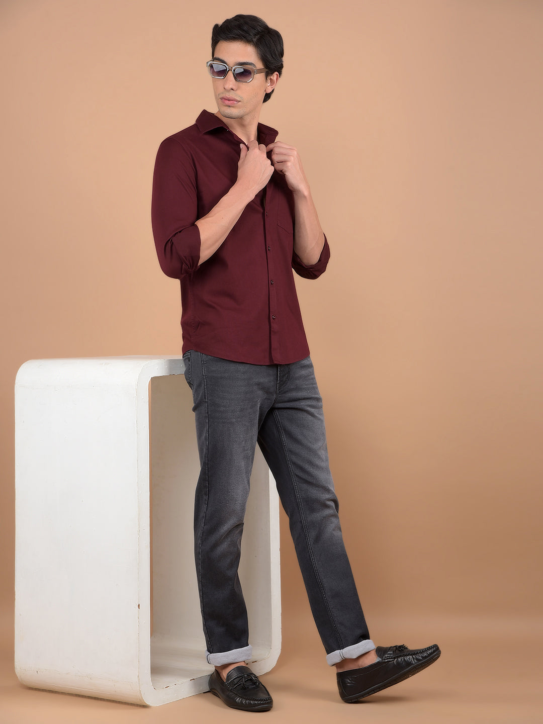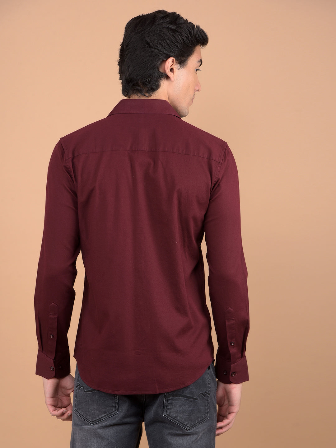 Crimsoune Club Men's Shirt In Maroon Color With Solid Pattern Combines Modern Style With Premium Comfort, Perfect For Both Casual And Semi-Formal Occasions.