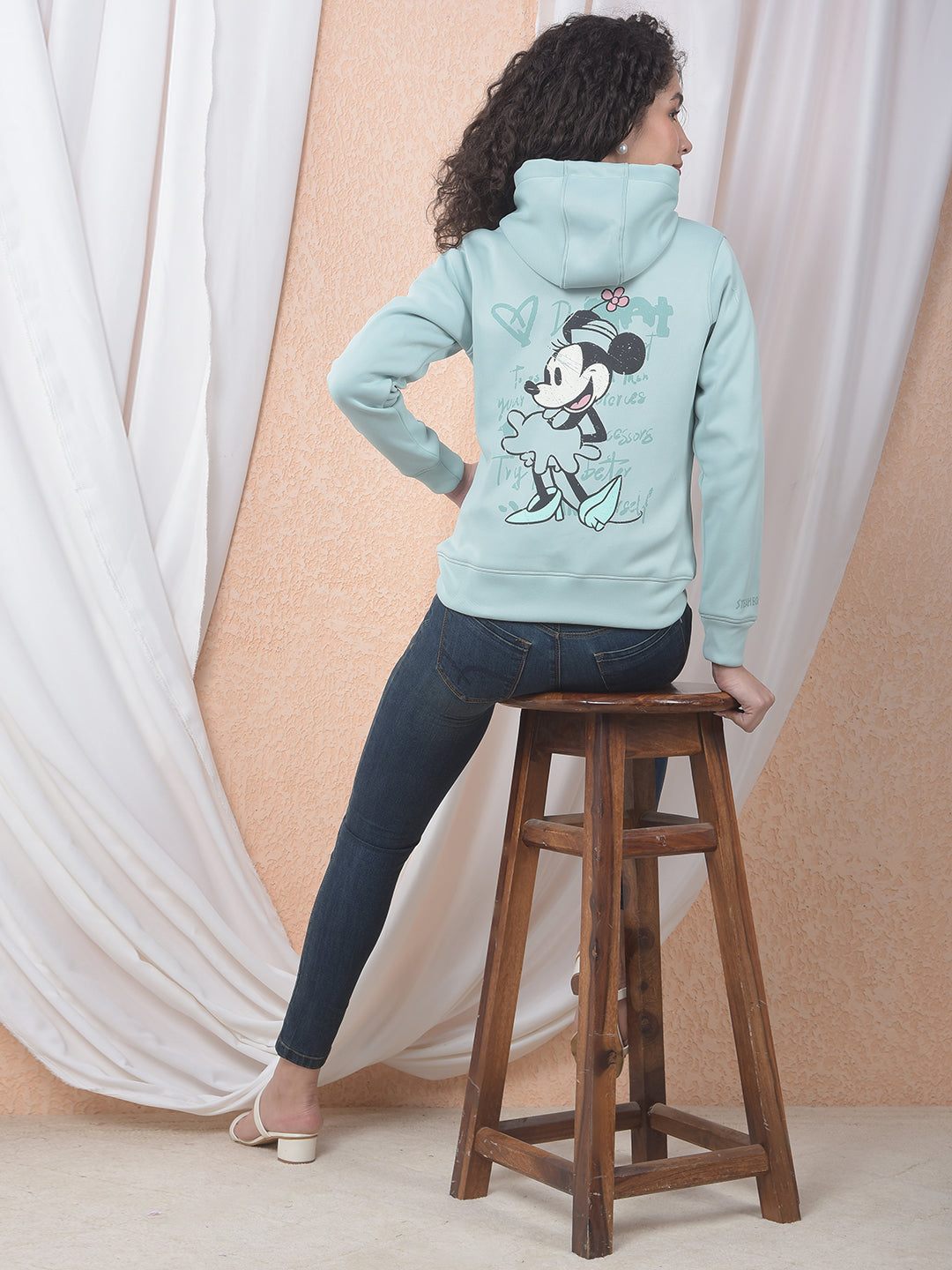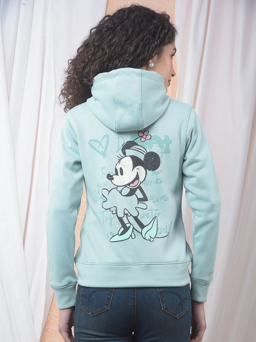 Mint Green Graphic Printed Hooded Sweatshirt