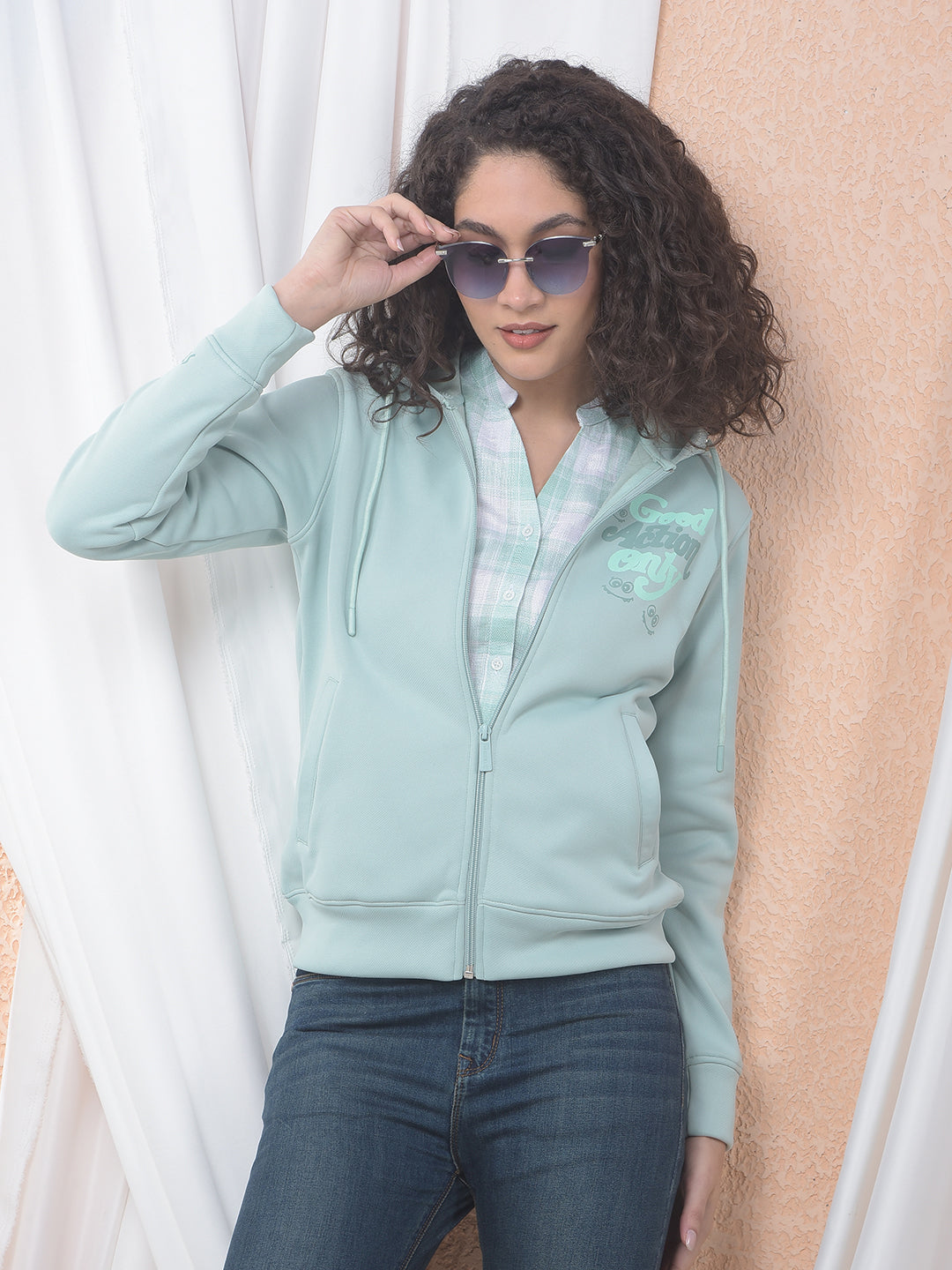 Elevate your casual wardrobe with this stylish Mint Green hooded sweatshirt from Crimsoune Club. Designed for Women, this comfortable jacket features a full zip-front closure for easy wear and adjustable coverage. The classic hood offers extra warmth and a relaxed, sporty vibe.