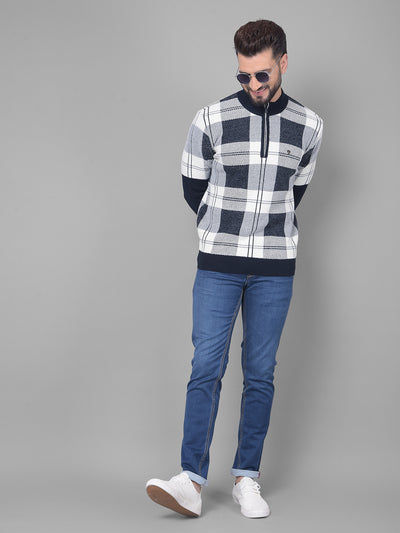 Navy Blue Checked Sweater-Men Sweaters-Crimsoune Club