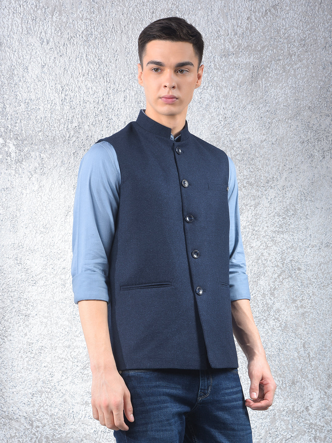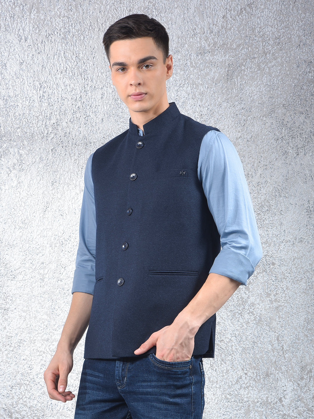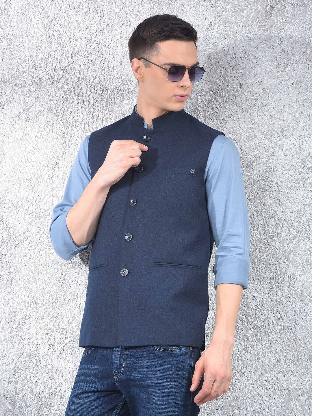 Layer up with this sophisticated Crimsoune Club men's navy blue sleeveless waist coat. It’s an excellent piece for adding a touch of formal elegance and warmth without bulk to your attire.