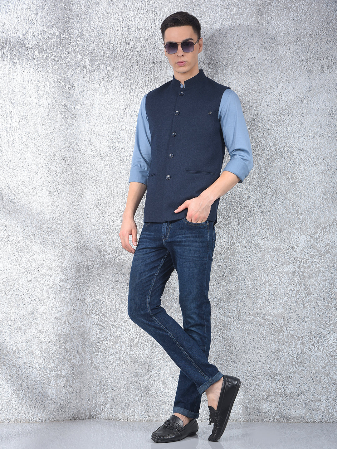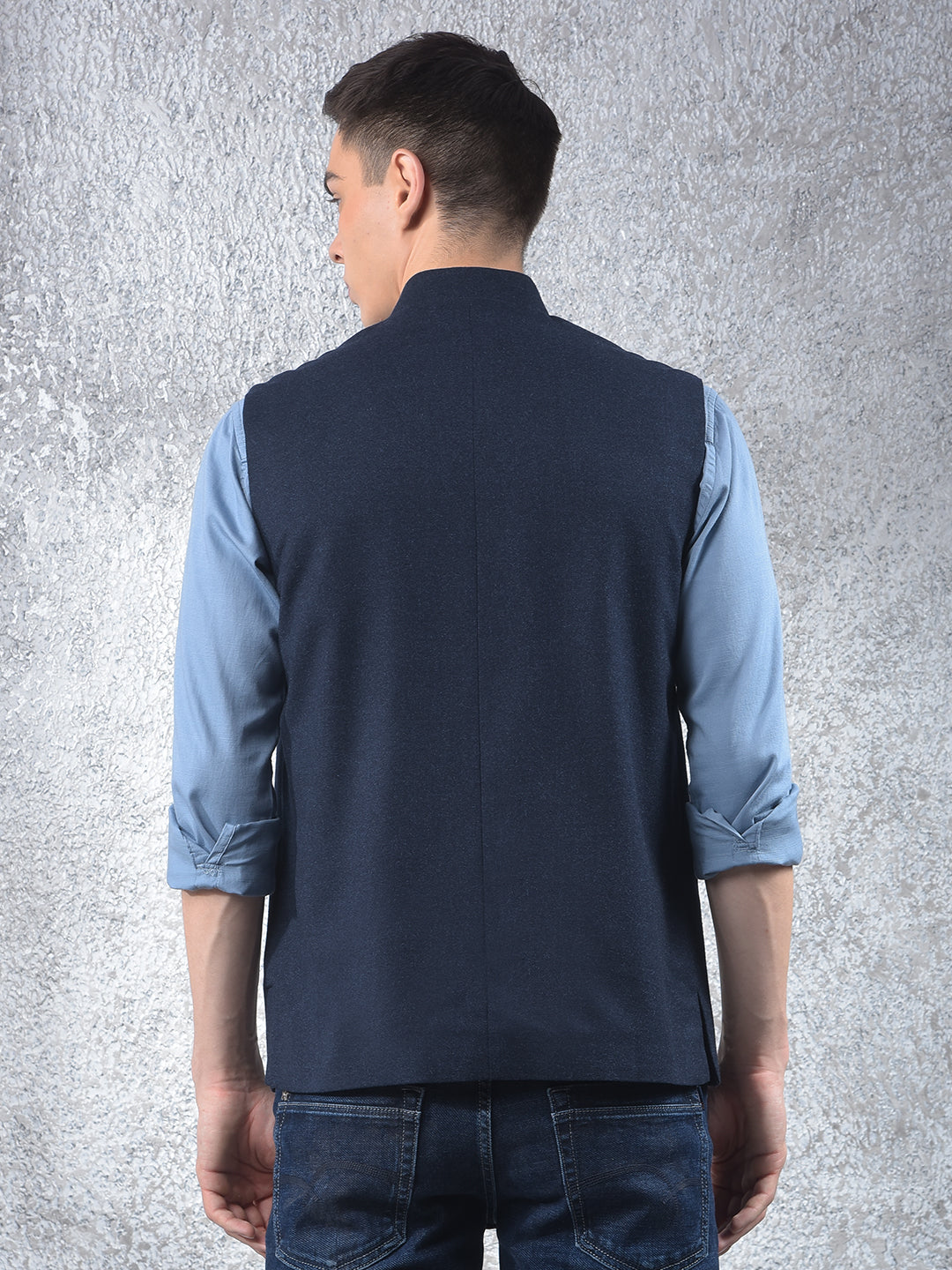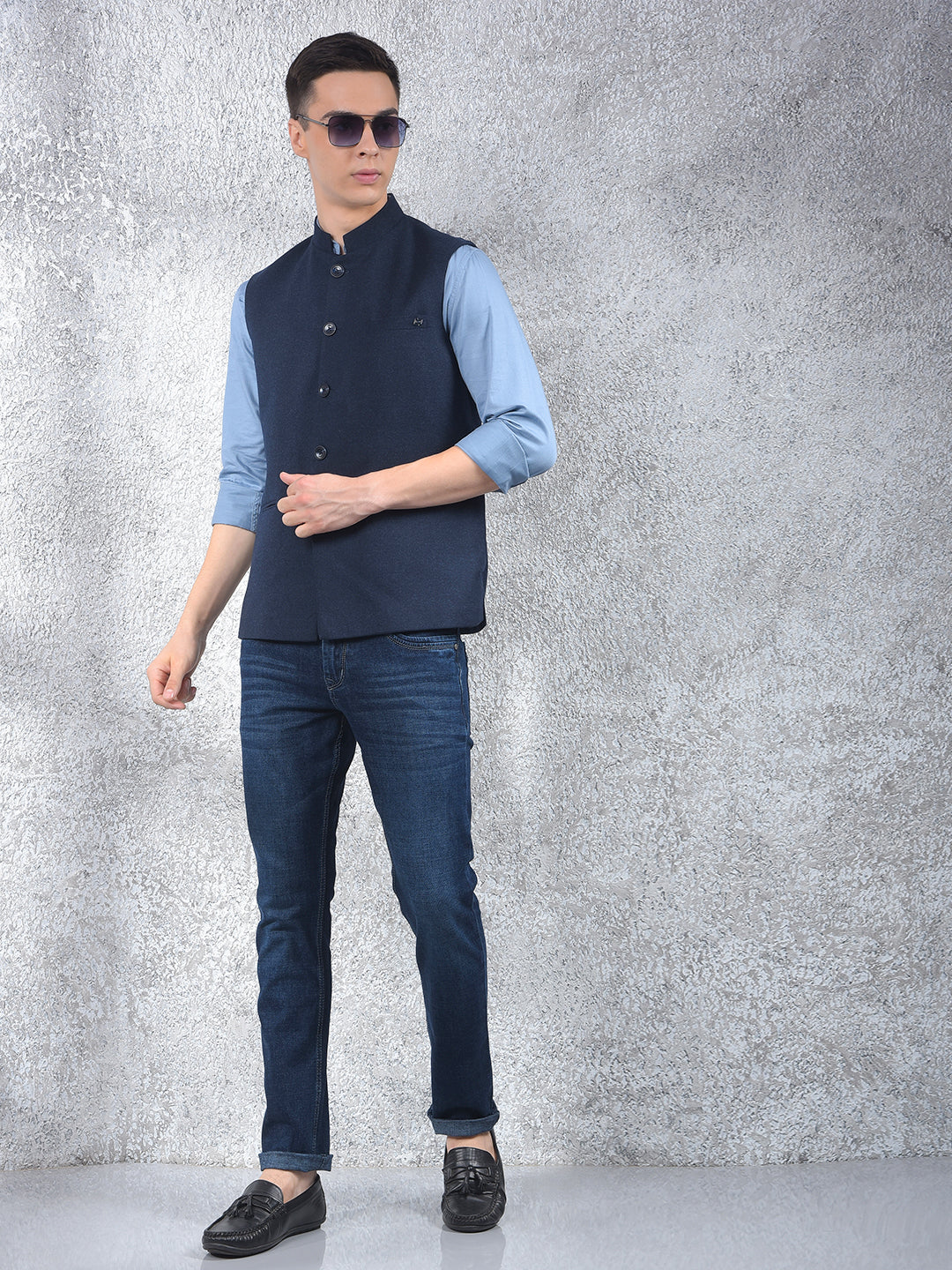 Layer up with this sophisticated Crimsoune Club men's navy blue sleeveless waist coat. It’s an excellent piece for adding a touch of formal elegance and warmth without bulk to your attire.