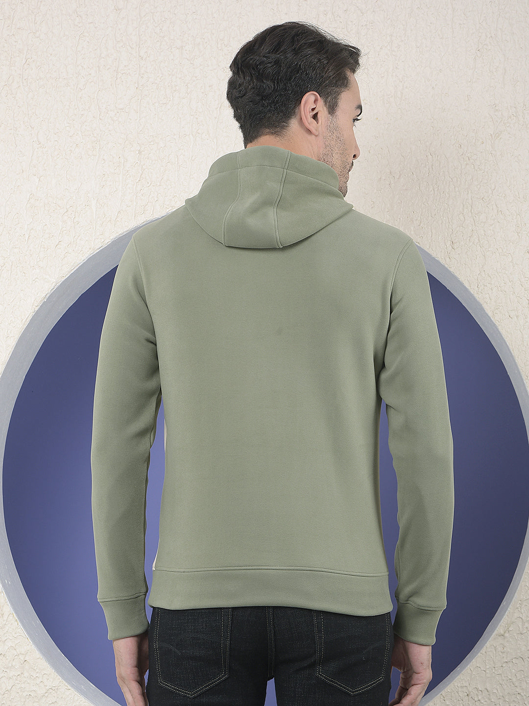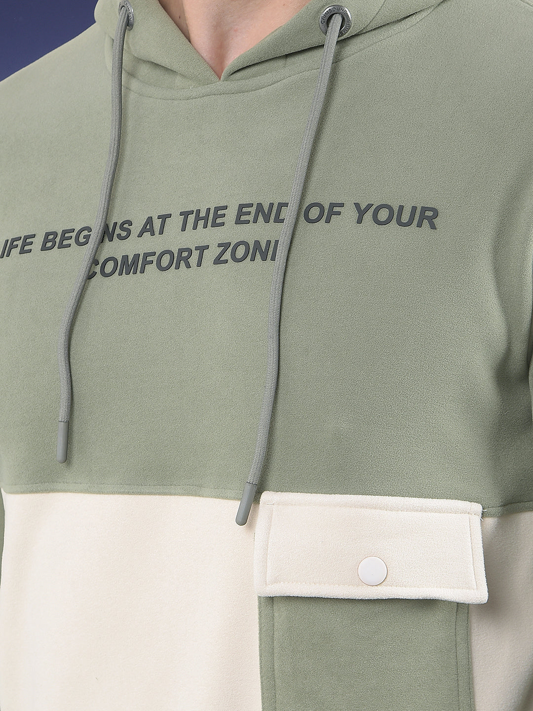 Olive Colourblocked Hooded Sweatshirt With Slogan Printed