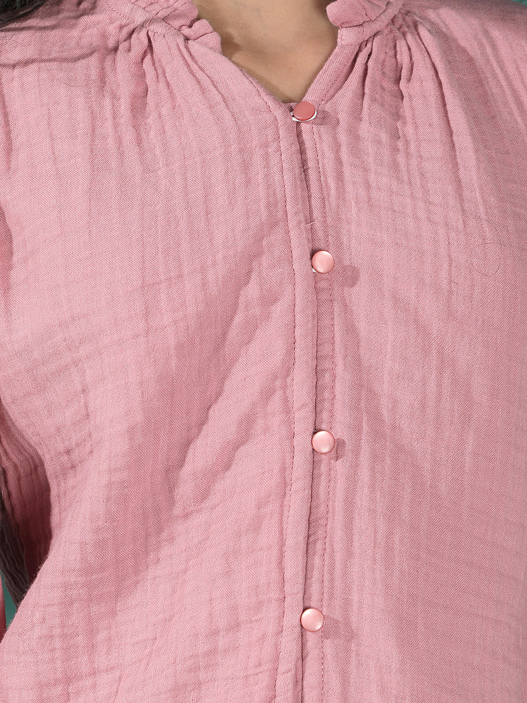 Pink Textured V-Neck Top