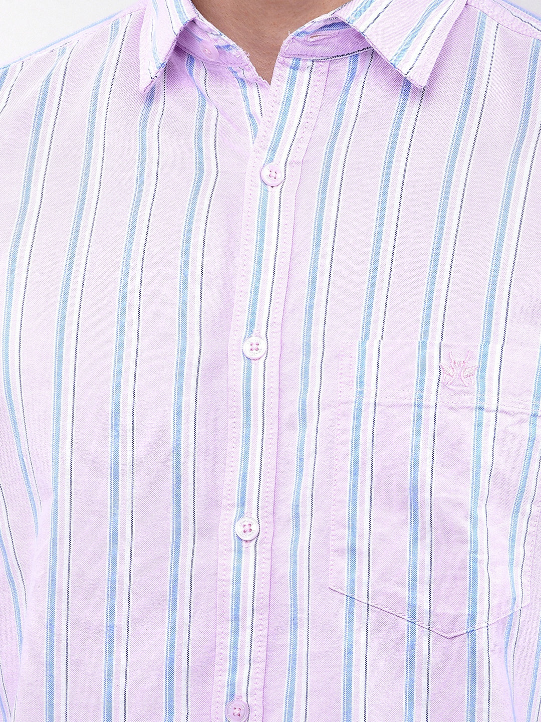 Pink Vertical Stripes 100% Cotton Shirt-Men Shirts-Crimsoune Club